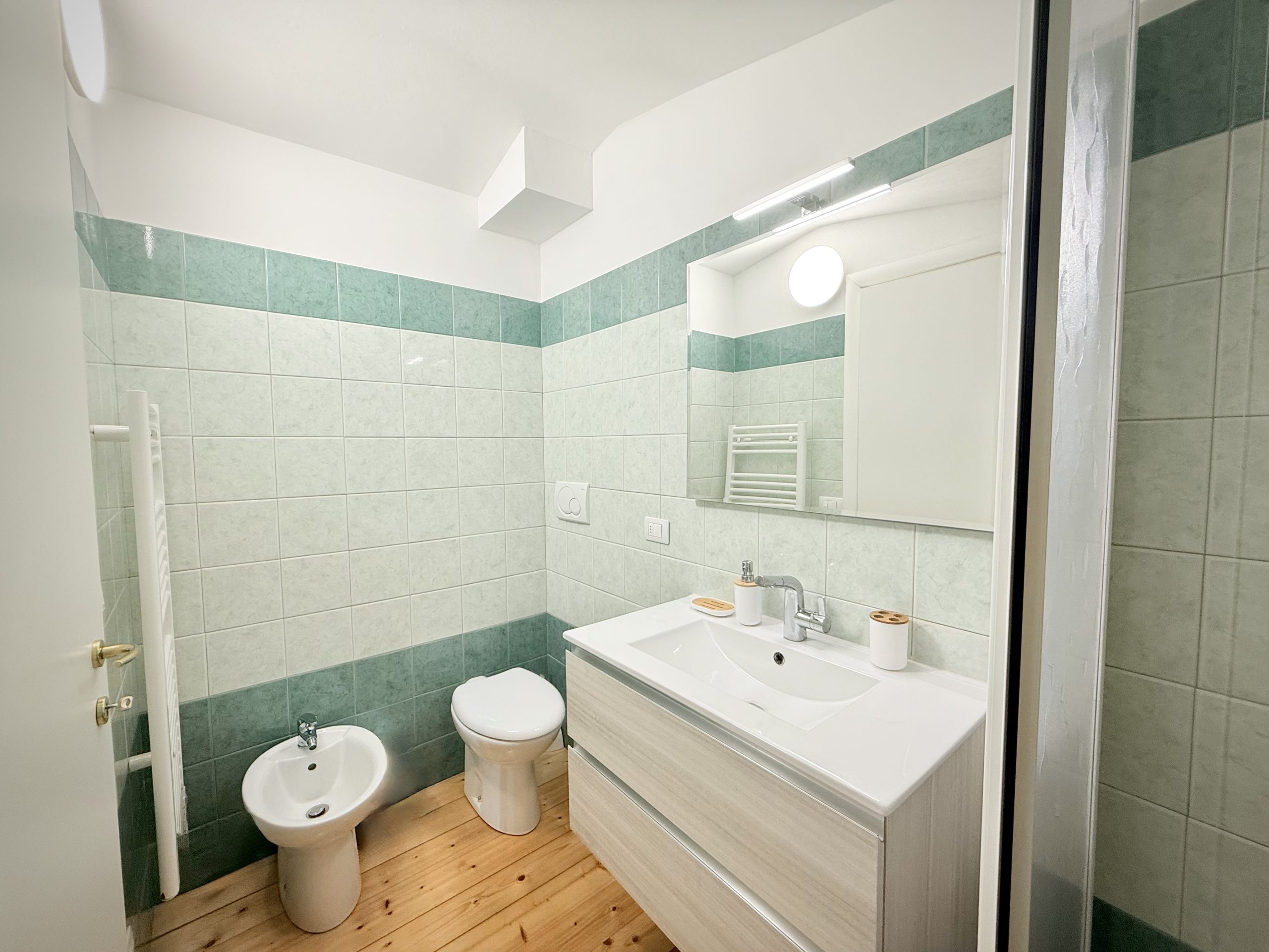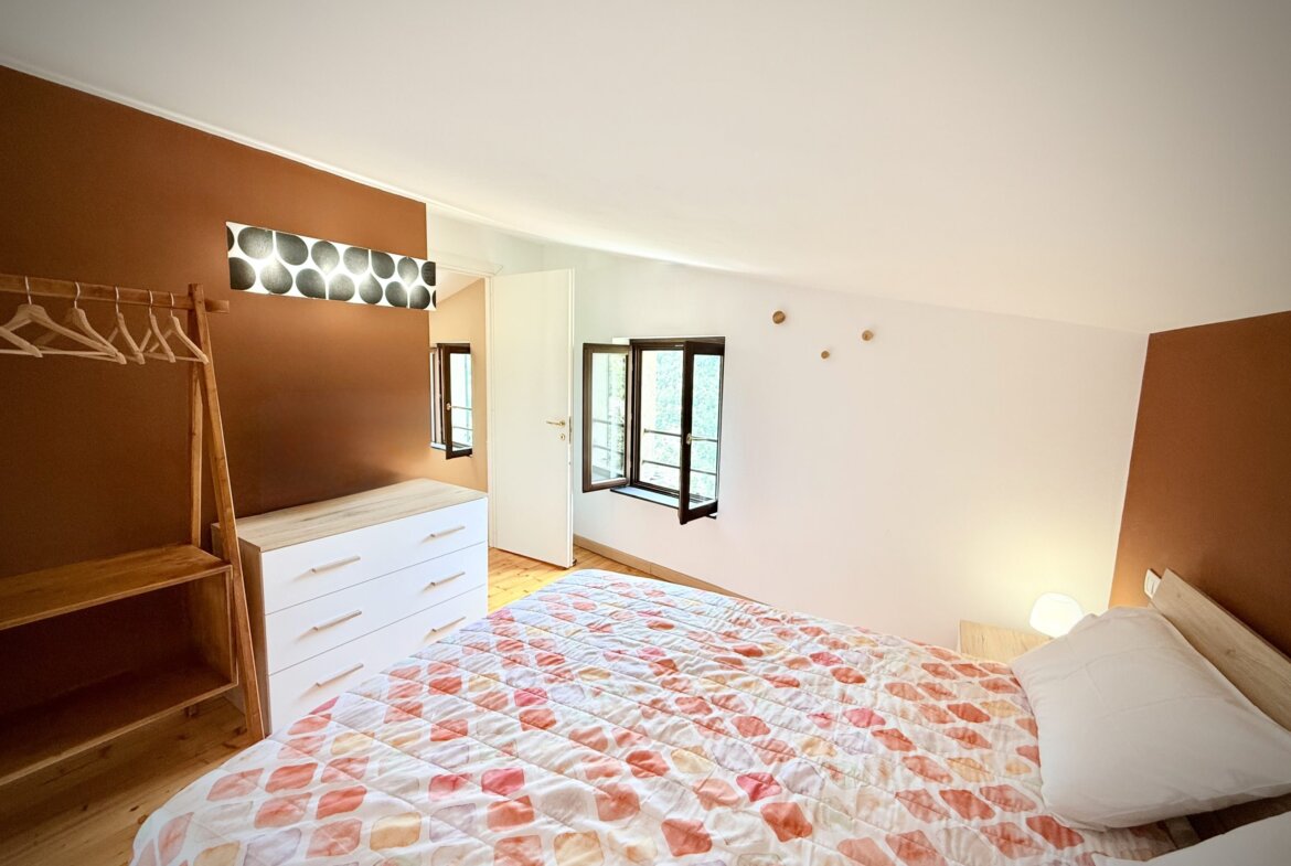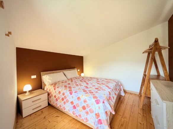 Das Dachgeschoss umfasst einen weiteren Wohnbereich, ein geräumiges Schlafzimmer sowie ein zweites Duschbad. Charakteristisch für diese Etage sind die charmanten Dachschrägen und Holzböden, die eine warme, behagliche Atmosphäre schaffen.