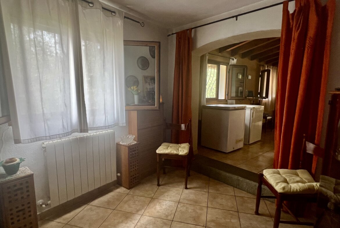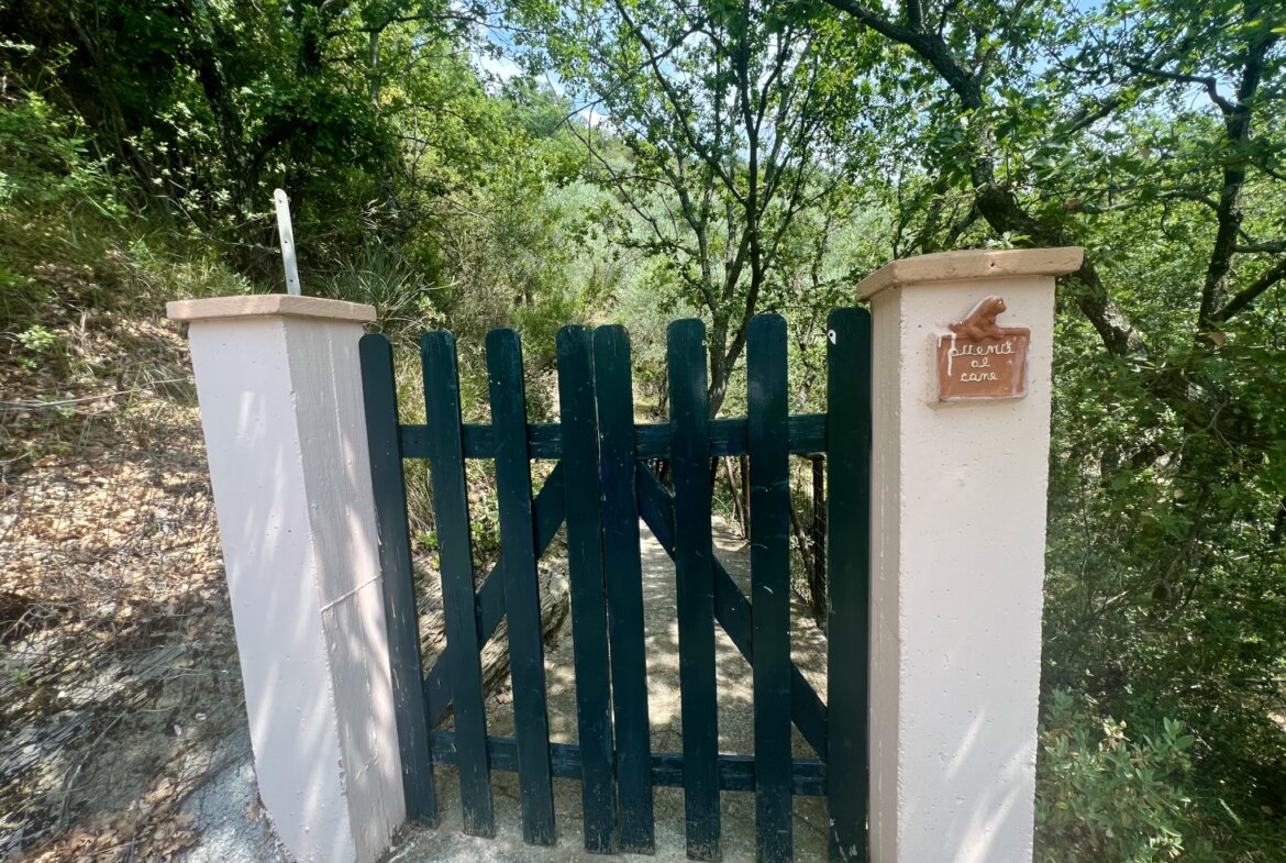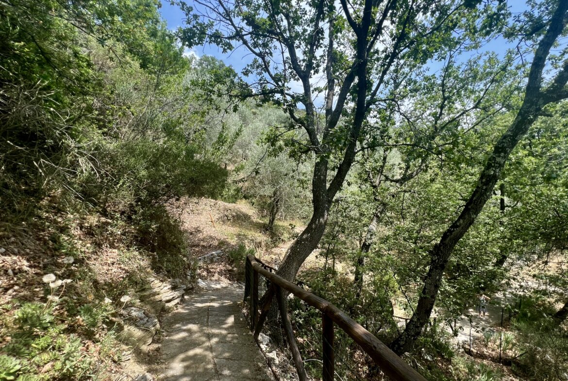 Das Anwesen umfasst ein Haupthaus, eine kleinere Dependance sowie ein 10.775 qm großes, terrassiertes Grundstück. Der Hauptteil des Grundstückes mit ca. 80 kultivierten Olivenbäumen, verschiedenen Obstbäumen und Gemüsegarten ist eingezäunt, der restliche Teil sind mediterrane Macchia und Eichenwald. Parkplätze stehen auf dem Grundstück mit direktem Zugang zur öffentlichen Straße zur Verfügung, die Häuser selber sind nur über einen befestigten Weg zu Fuß erreichbar. Die Möglichkeit zum Bau einer grundstückseigenen Zufahrt besteht.