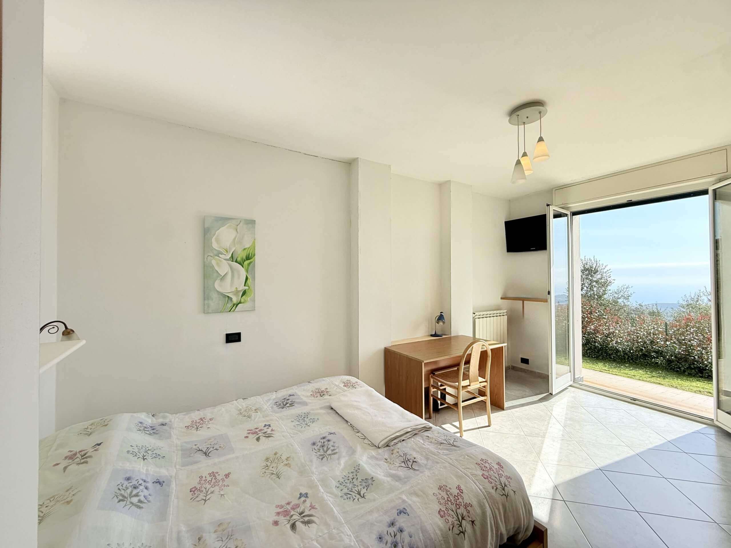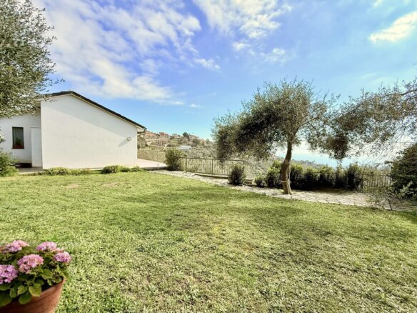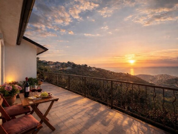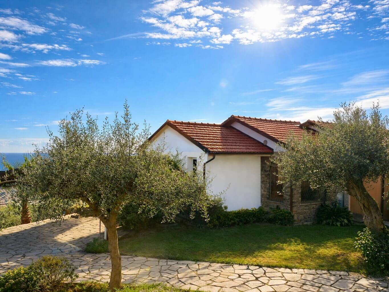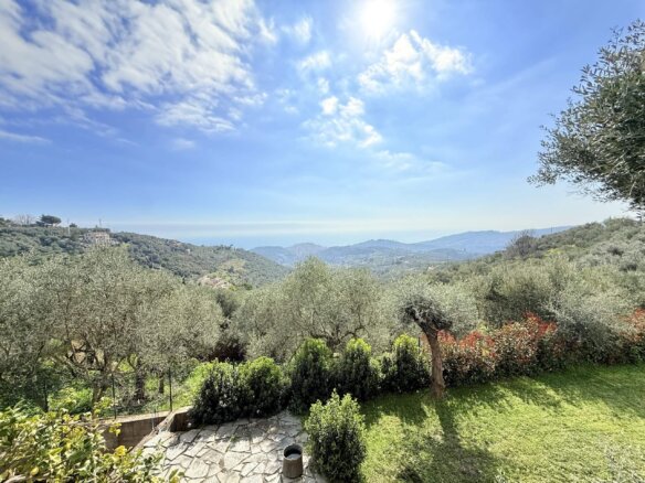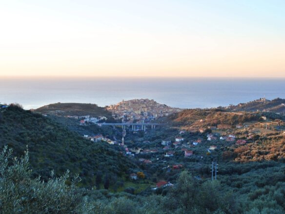 In erhöhter, sonniger Lage oberhalb des kleinen Ortsteils Artallo präsentiert sich diese attraktive Landhaus-Villa mit eindrucksvollem Panoramablick über die historische Altstadt von Porto Maurizio bis hin zum Mittelmeer. Die reine Südausrichtung sorgt das ganze Jahr über für hervorragende Lichtverhältnisse und eine angenehme Besonnung, während die geschützte Hügellage zugleich vor kühlen Nordwinden bewahrt.