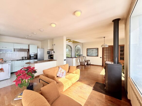 Die technische Ausstattung der Villa entspricht modernen Standards. Das Haus ist gut isoliert und wird über eine Gasheizung beheizt; ergänzend sorgt ein Holzofen im Wohnbereich für behagliche Wärme und eine besonders angenehme Atmosphäre.