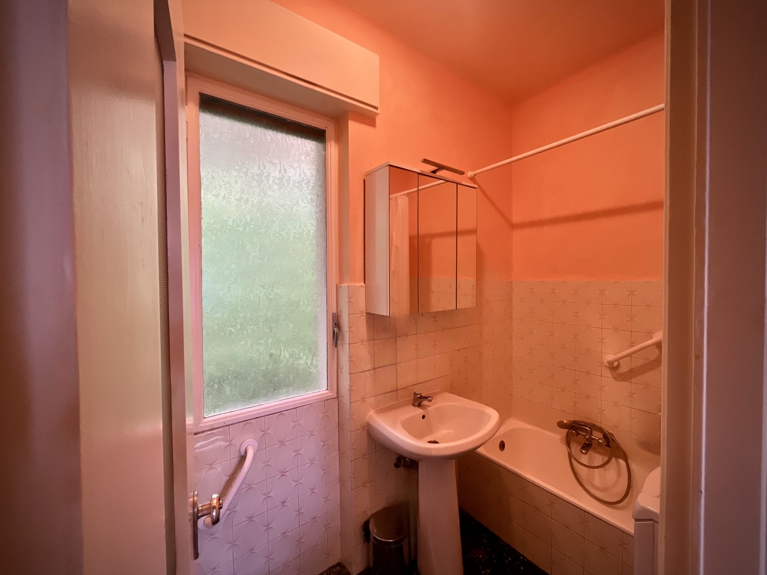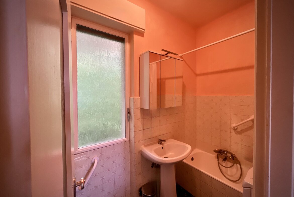 Angrenzend zum Wohnzimmer liegt die funktionale Küche. Das Chalet verfügt über zwei Schlafzimmer, darunter ein einladendes Hauptschlafzimmer und ein kleineres Schlafzimmer, das derzeit mit einem Etagenbett ausgestattet ist und einen direkten Zugang zur Terrasse genießt. Das Badezimmer wurde mit einer praktischen Badewanne ausgestattet. Ein ca. 12 m² großer Keller bietet zusätzlichen Stauraum.
