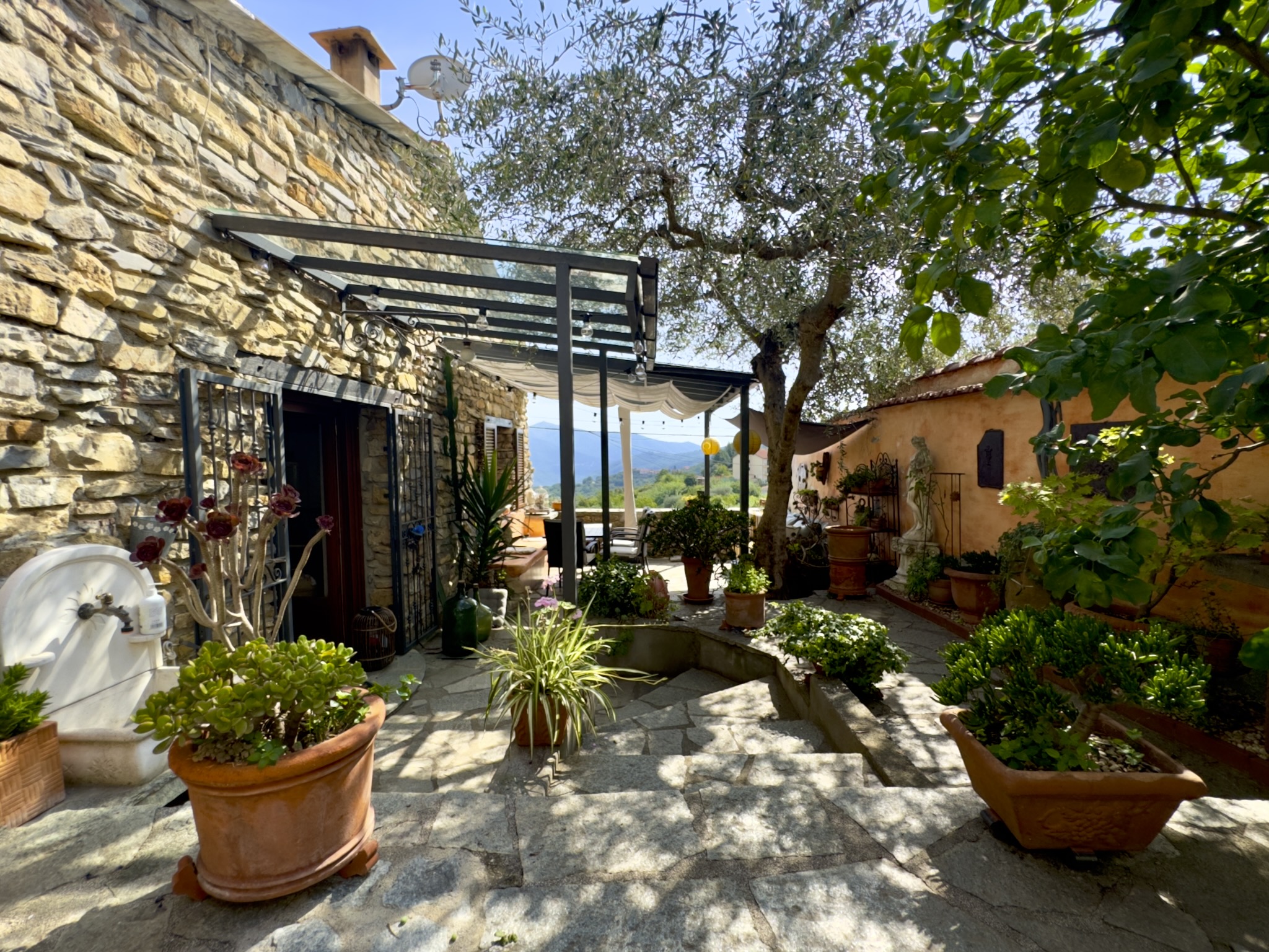 Nur etwa 30 Autominuten von der Küste und dem pulsierenden Leben der Provinzhauptstadt Imperia entfernt, liegt ruhig und beschaulich auf 450 m Höhe der kleine Ort Ville San Pietro. Das Dorf ist umgeben von Olivenhainen, Gärten und Wiesen. Darüber erheben sich ausgedehnte Wälder, die zum Wandern, Radfahren und Spazierengehen einladen. Fußpfade führen über historische Natursteinbrücken vorbei an alten Ölmühlen und im Sommer laden natürliche Badebecken im Fluss zur Erfrischung ein.