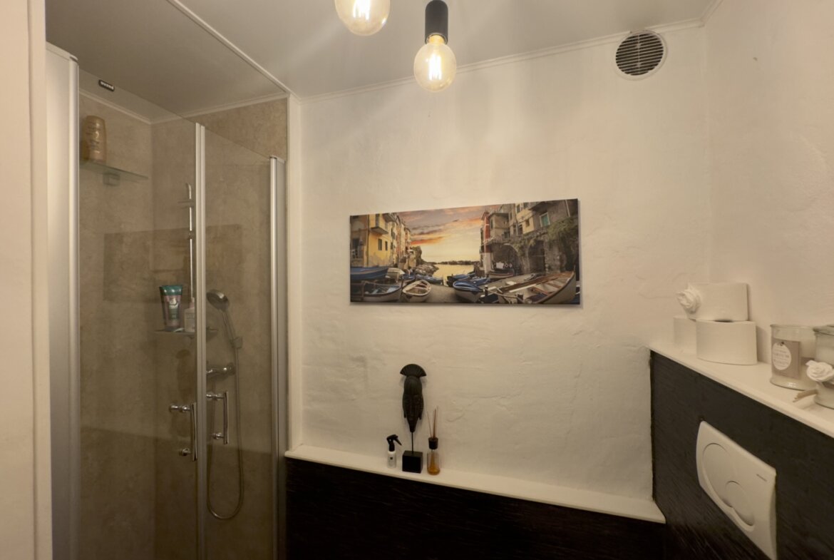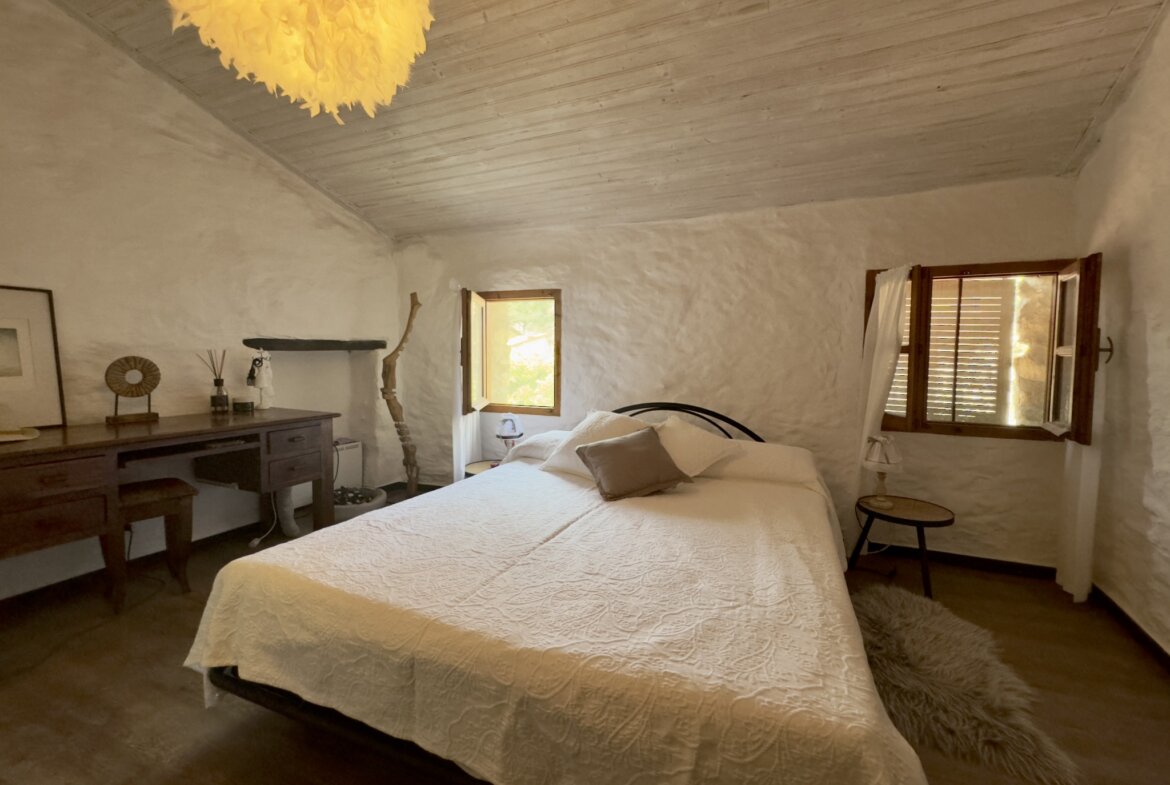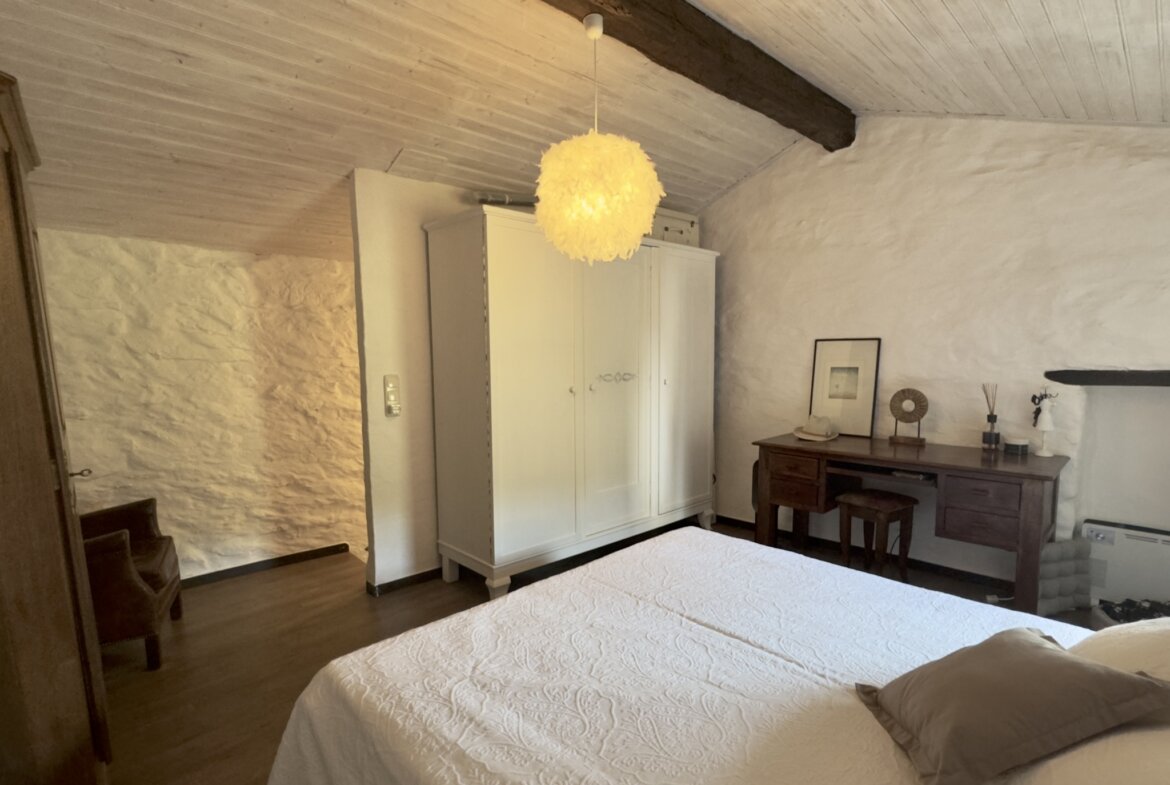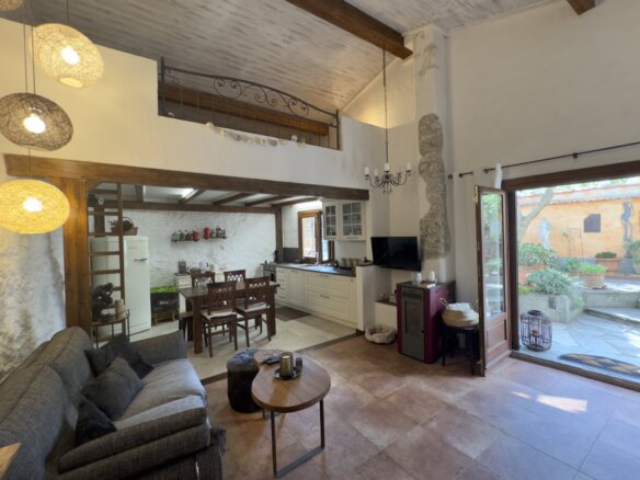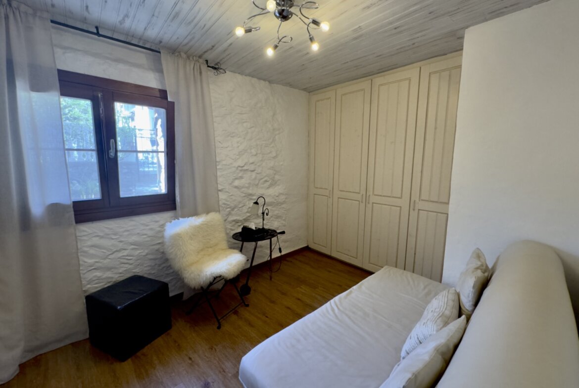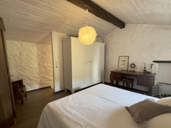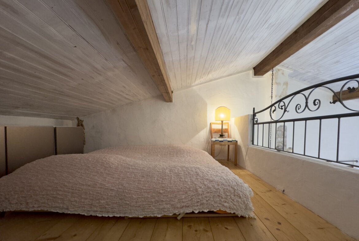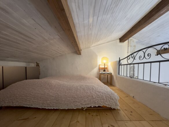 Das charmante Natursteinhaus liegt ruhig und gut besonnt am Rand des historischen Zentrums, wenige Schritte von den öffentlichen Parkplätzen entfernt. Es wurde zwischen 1995 und 2000 aus einer Ruine liebevoll neu aufgebaut und bietet komfortable rund 60 m2 Wohnfläche. Zentraler Punkt ist der gemütliche Wohn-Essraum mit einer Deckenhöhe von bis zu vier Metern, die den Einzug einer kleinen Galerie mit Schlafplatz ermöglichte. Die moderne, offene Küche wurde 2019 erneuert. Dem Wohnraum schließen sich ein Schlafzimmer mit praktischen Einbauschränken und das Duschbad an. Vom Wohnraum führt eine Treppe in das Obergeschoss mit einem weiteren Schlafzimmer.