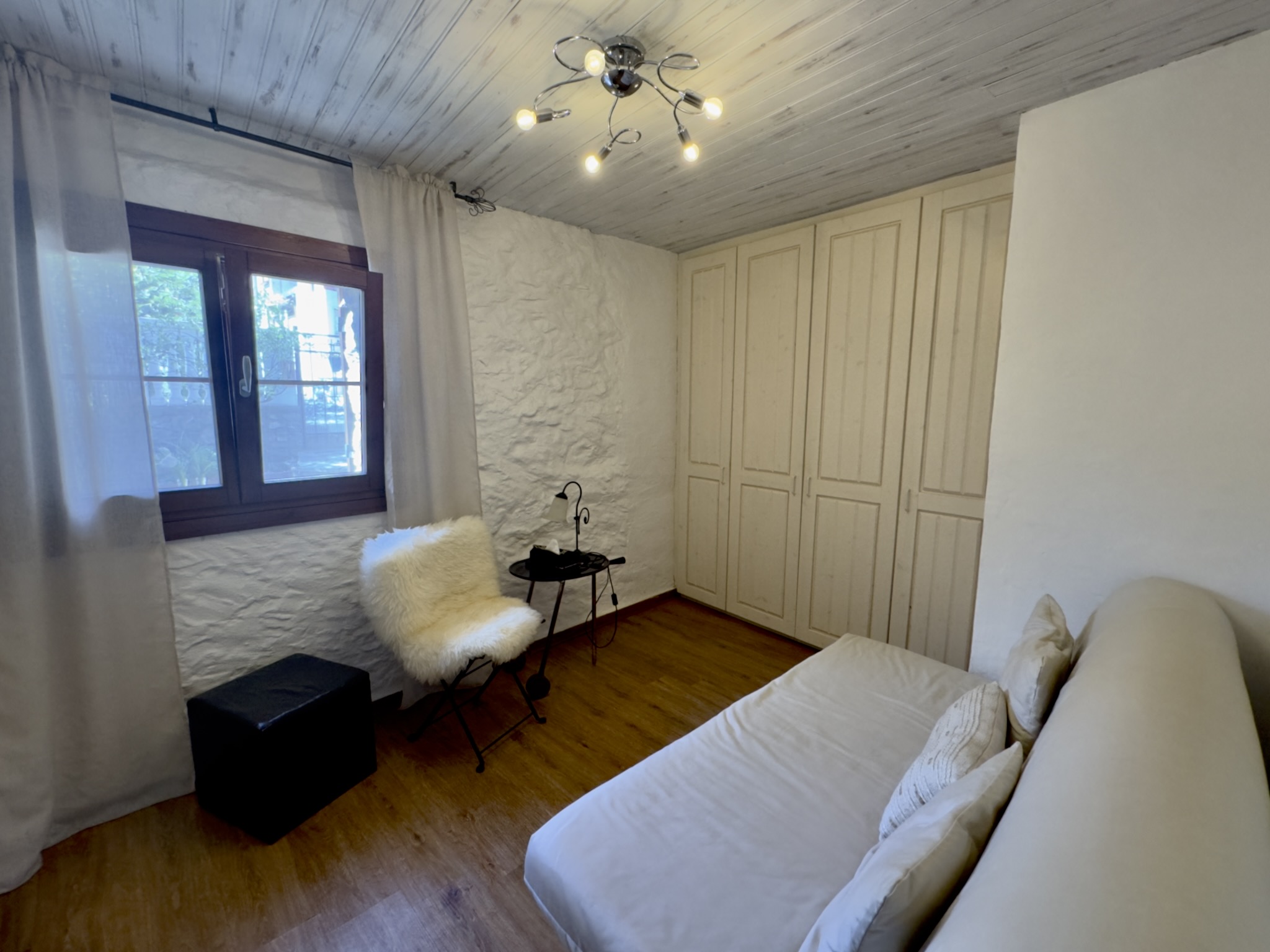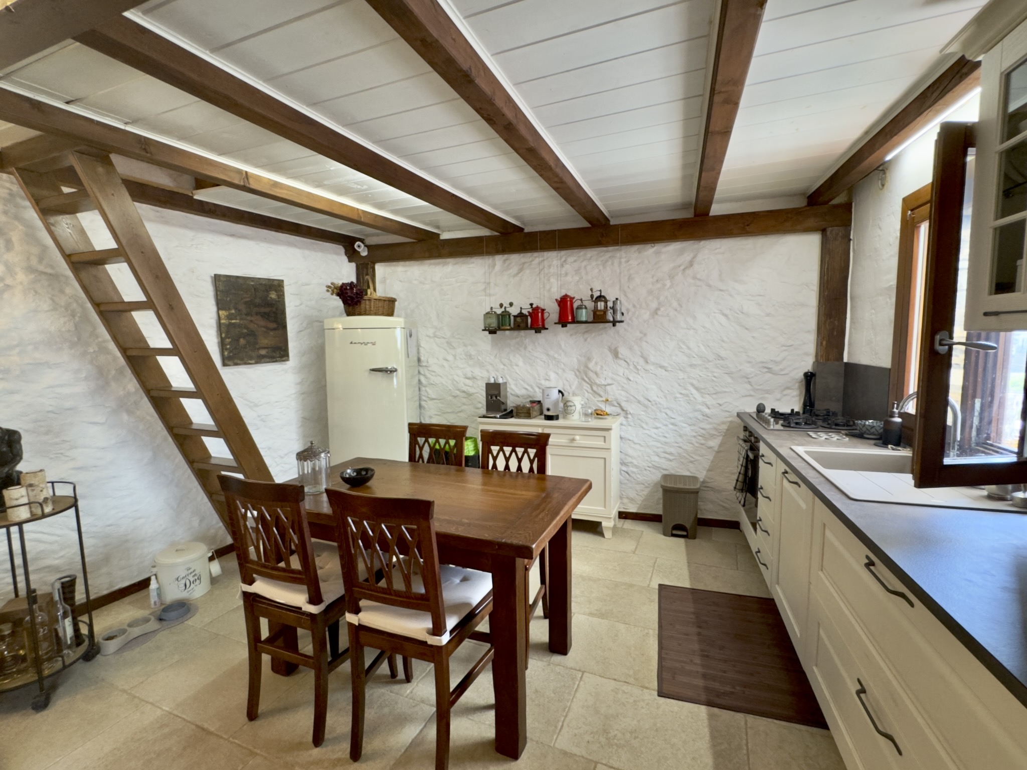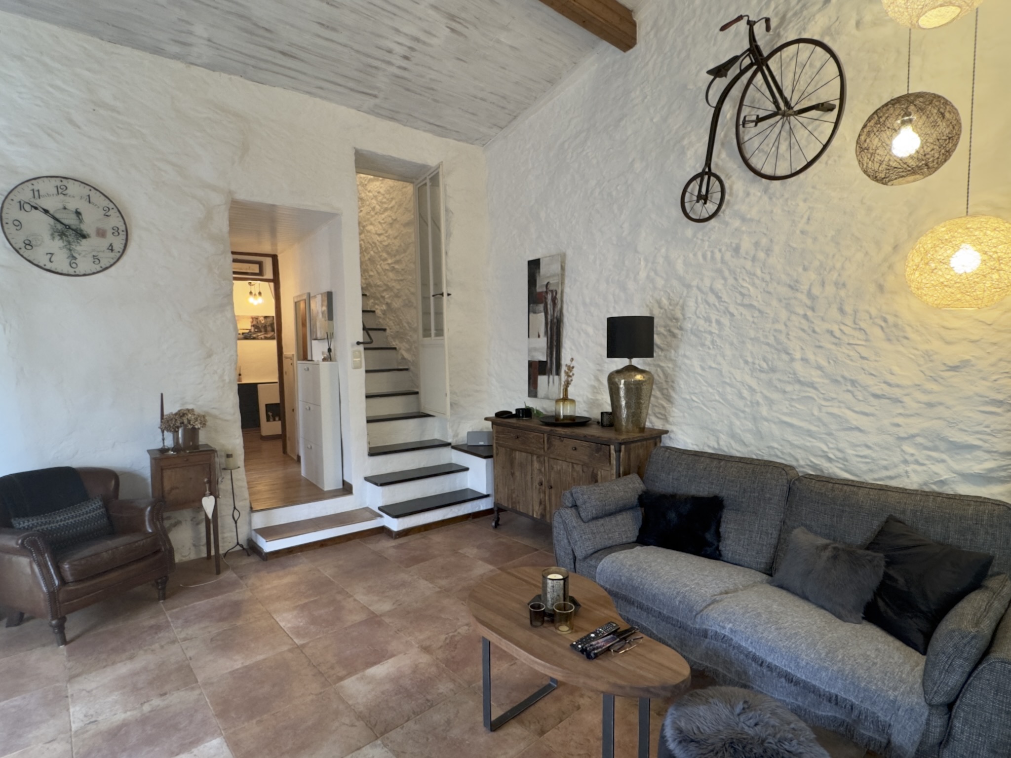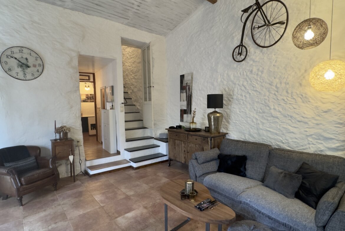 Das charmante Natursteinhaus liegt ruhig und gut besonnt am Rand des historischen Zentrums, wenige Schritte von den öffentlichen Parkplätzen entfernt. Es wurde zwischen 1995 und 2000 aus einer Ruine liebevoll neu aufgebaut und bietet komfortable rund 60 m2 Wohnfläche. Zentraler Punkt ist der gemütliche Wohn-Essraum mit einer Deckenhöhe von bis zu vier Metern, die den Einzug einer kleinen Galerie mit Schlafplatz ermöglichte. Die moderne, offene Küche wurde 2019 erneuert. Dem Wohnraum schließen sich ein Schlafzimmer mit praktischen Einbauschränken und das Duschbad an. Vom Wohnraum führt eine Treppe in das Obergeschoss mit einem weiteren Schlafzimmer.