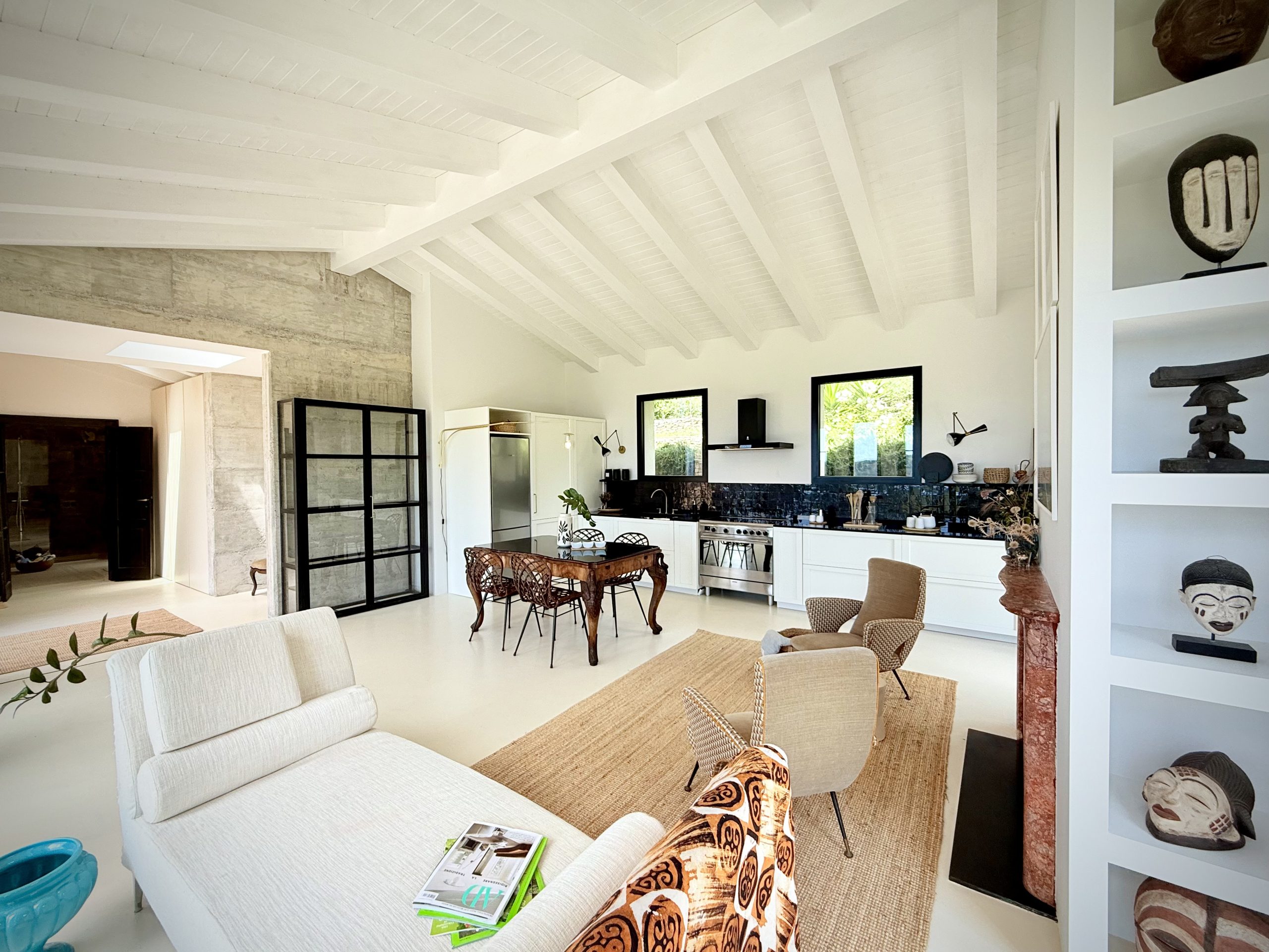 Die Villa entstand aus der behutsamen Restaurierung und stilvollen Erweiterung eines alten Rustico und vereint traditionelle Elemente mit moderner Architektur und luxuriösem Wohnkomfort. Auf zwei Ebenen bietet sie rund 184 m² Wohnfläche. Eine Außentreppe führt zum Hauptwohnbereich (ca. 150 m²), der sich offen auf einer Ebene erstreckt.
