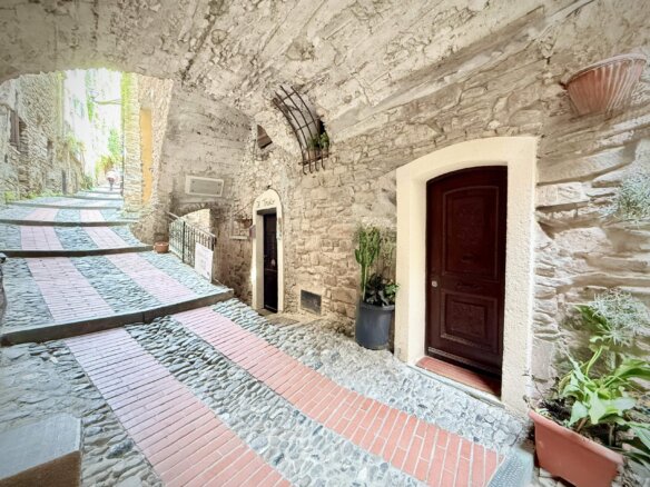 Mitten im historischen Zentrum von Dolceacqua, direkt an der zentralen Via Castello, präsentiert sich dieses charmante Dorfhaus. Auf fünf Etagen mit insgesamt rund 150 m² Wohnfläche vermittelt das Gebäude das typische mediterrane Lebensgefühl, unterstrichen durch klassische ligurische Rundbögen. Besonders hervorzuheben sind die flexiblen Gestaltungsmöglichkeiten der Wohnflächen sowie die Aufteilung in zwei Apartments, da das Haus über zwei separate Eingänge verfügt.
