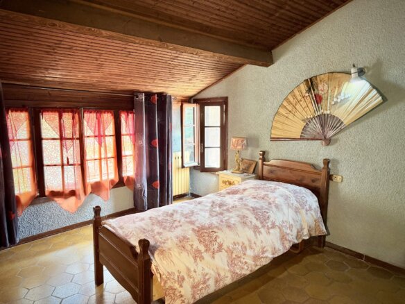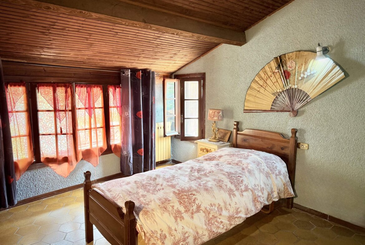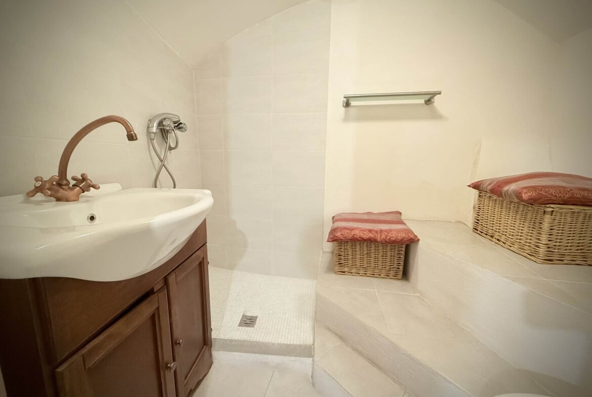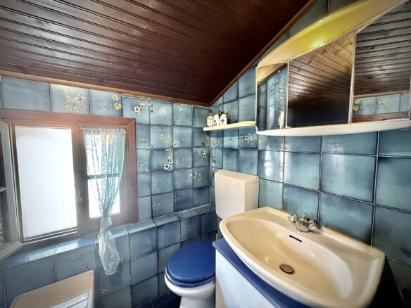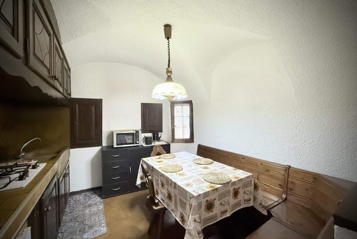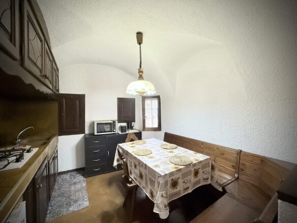 Das Haupthaus bietet ein gemütliches Wohnzimmer mit einem stimmungsvollen Holzkamin sowie eine traditionelle Wohnküche. Eine Etage darüber befindet sich ein geräumiges Badezimmer mit Badewanne, ein gemütliches Schlafzimmer mit Ankleidebereich und im darüberliegenden Stockwerk ein weiteres Schlafzimmer mit eigenem Duschbad. Das Dachgeschoss beherbergt eine praktische Waschküche und eröffnet den Zugang zu einer circa 10 m² großen, romantischen Panoramaterrasse – ideal für entspannte Stunden mit Blick über das Dorf. Das Gästeapartment verfügt über einen separaten Eingang und kann bei Bedarf unabhängig genutzt werden. Es umfasst einen Wohn-/Schlafbereich, eine Küche sowie ein Badezimmer mit Dusche.