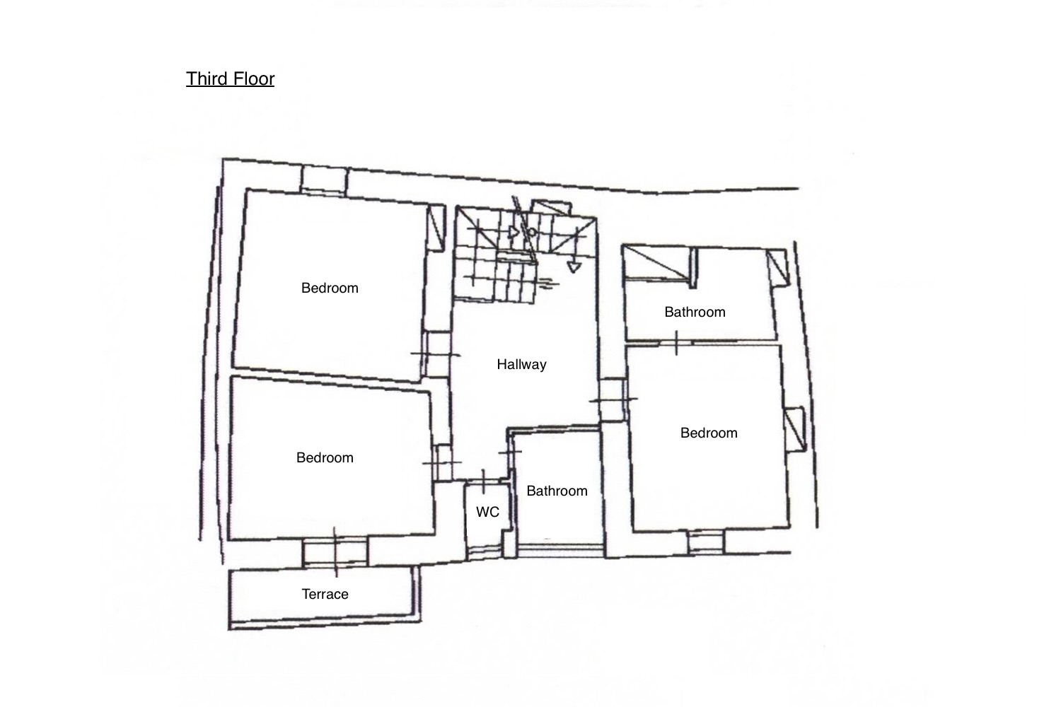 Der Zugang erfolgt über eine gemeinschaftliche Treppe, die Sie in die erste Etage mit dem Eingangsbereich führt. In der zweiten Etage befinden sich drei geräumige Schlafzimmer, ein Badezimmer mit Dusche, ein weiteres mit Badewanne sowie ein separates WC. Eines der Schlafzimmer verfügt zusätzlich über eine Balkon.