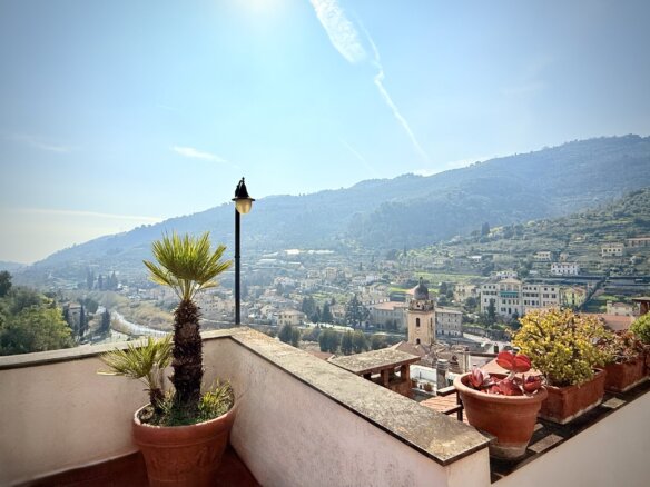 Das Highlight der Wohnung ist die atemberaubende 46 m² große Panoramaterrasse in der obersten Etage. Der unvergleichliche Blick auf die Dächer von Dolceacqua und das majestätische „Castello dei Doria“ wird Sie jeden Tag aufs Neue begeistern. Die Terrasse bietet viel Platz zum Sonnenbaden und einen ca. 6 m² großen überdachten Bereich mit Außenküche, der auch im Sommer angenehmen Schatten spendet.