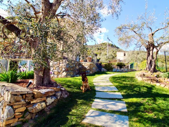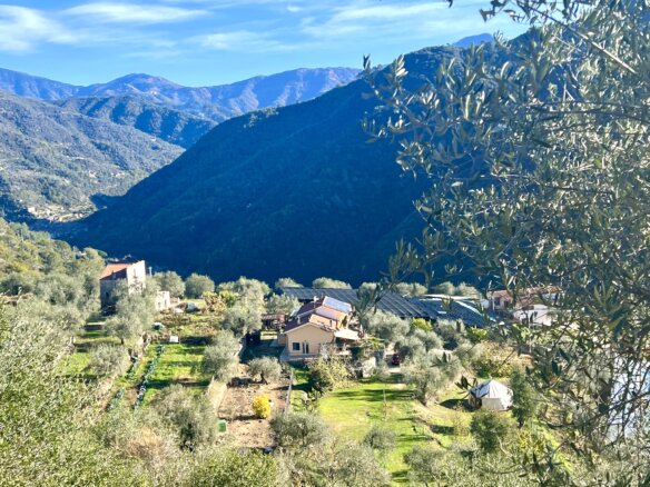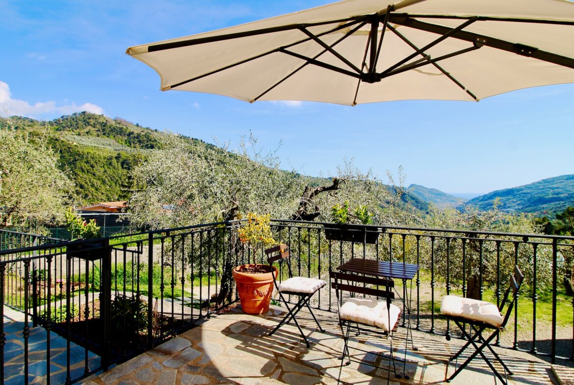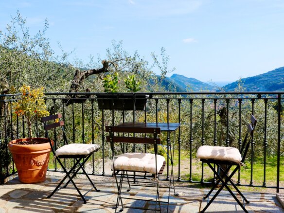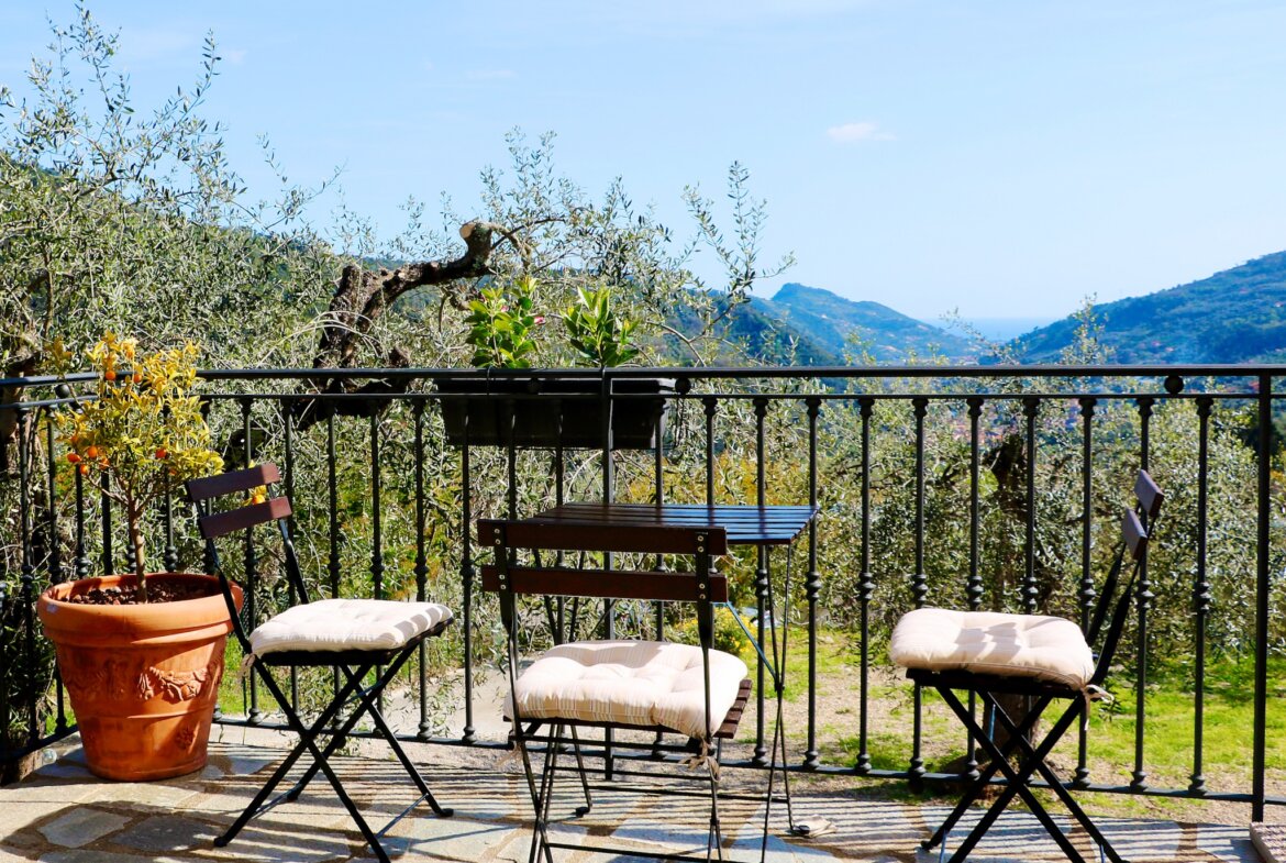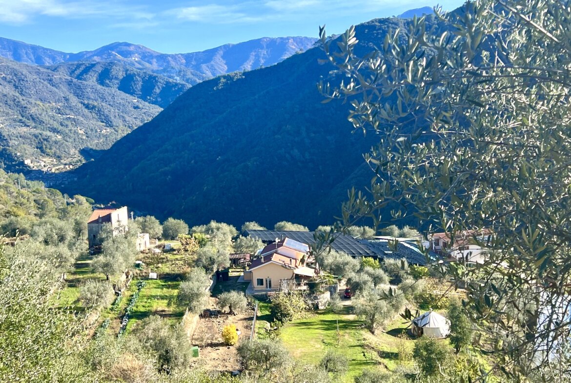 Dieses derzeit als B&B genutzte Anwesen liegt nach Süden ausgerichtet und mit einem schönen Blick über das Tal und das am Horizont glitzernde Meer in den Hügeln von Dolceacqua. Der charmante mittelalterliche Ort mit Einkaufsmöglichkeiten und Restaurants ist über eine gut ausgebaute Bergstraße in nur 10 Autominuten erreichbar. Nur 20 Autominuten sind es an die Küste nach Bordighera/Ventimiglia, 40 Minuten nach Sanremo, und ca. 50 Minuten an die Côte d’Azur mit Monaco und dem internationalen Flughafen Nizza.