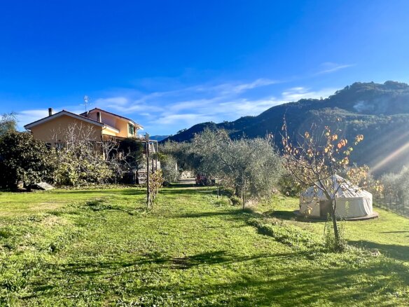 Das umliegende, circa 3.000 qm große Grundstück ist fast eben, komplett eingezäunt und mit traditionellen Natursteinmauern eingefasst. Neben alten, wunderschönen Olivenbäumen gibt es Feigen- und andere Obstbäume sowie einen Gemüsegarten. Alles ist durchdacht unter rein biologischem Aspekt bewirtschaftet. Auf dem Grundstück steht ein Jurte, die z.B. ideal für Yoga-Kurse, Massagen oder andere Workshops genutzt werden kann.