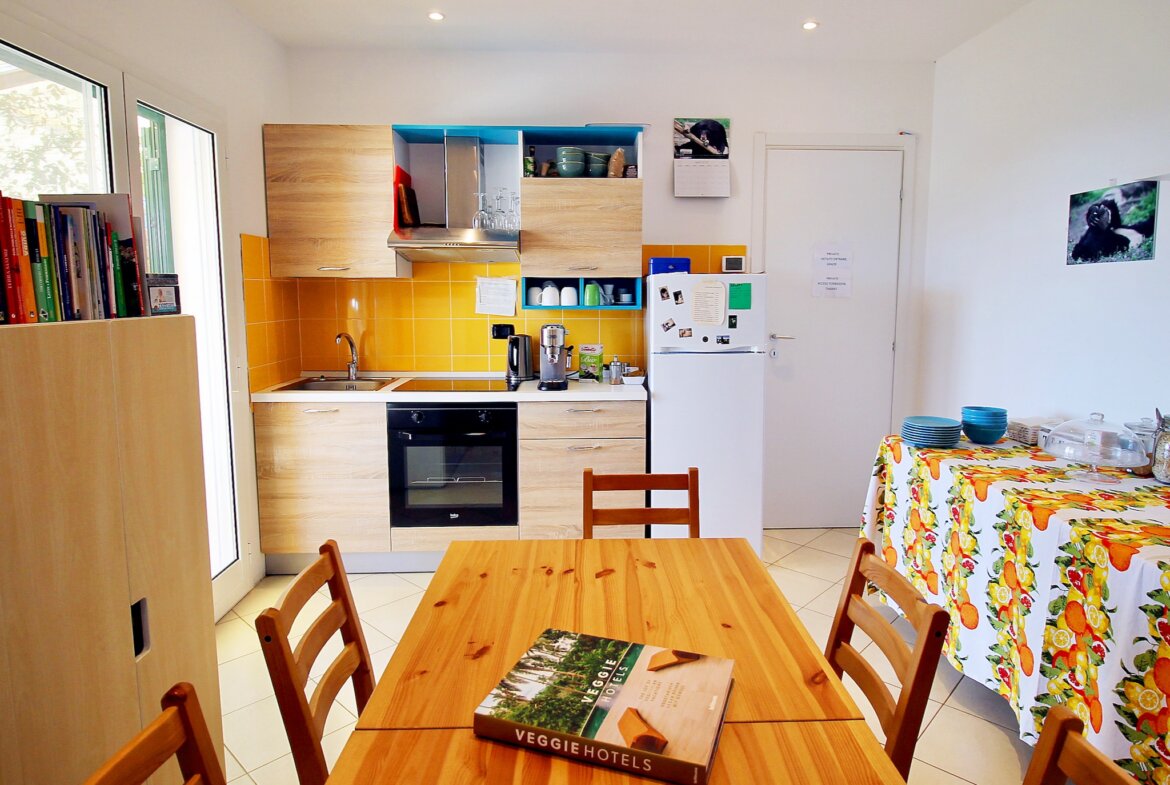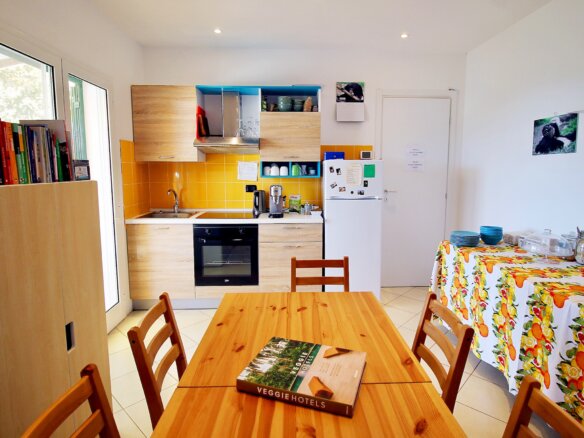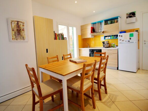 Das Erdgeschoss ist in zwei eigenständige Wohneinheiten mit hellen, großzügigen Räumen aufgeteilt, die aber mit einer Tür verbunden sind. Die eine Einheit hat ein Wohnzimmer mit Küchenzeile sowie 2 Schlafzimmer (Gästezimmer) mit jeweils eigenem Bad; die zweite Einheit hat einen Wohnraum mit Küchenzeile, ein Schlafzimmer (Gästezimmer) sowie ein Wannenbad. Von beiden Wohneinheiten führen jeweils Fenstertüren auf die Südterrasse und in den Garten.