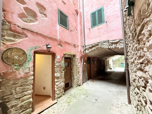 Inmitten der romantischen, verwinkelten Gassen des mittelalterlichen Dorfes Isolabona, nur wenige Schritte vom lebendigen Dorfplatz entfernt und dennoch angenehm ruhig gelegen, befindet sich dieses charmante Dorfhaus mit besonderem Flair.