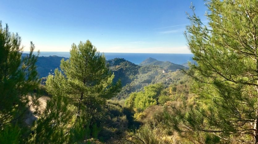 In reiner Südlage und mit unverbaubarem, traumhaften Blick über das Tal und das am Horizont schimmernde Meer befindet sich dieses Grundstück auf einem Hügel zwischen den mittelalterlichen Orten Dolceacqua und Perinaldo.
