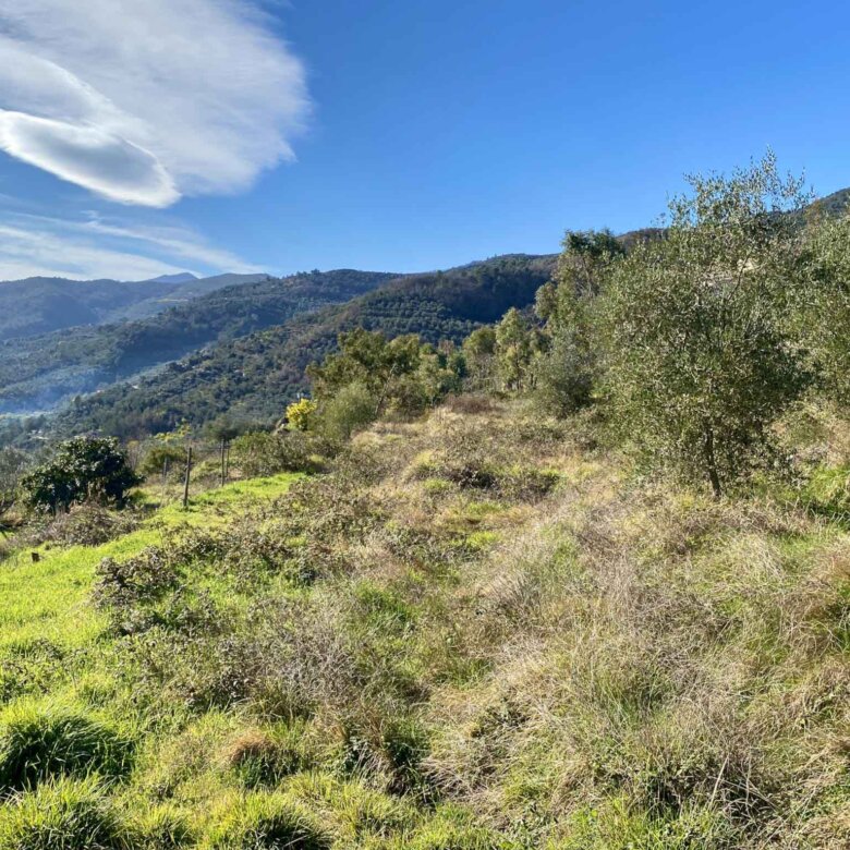 Der 4.640 m² große Olivenhain (1.264 m² sind etwas separiert) liegt rund 2 km außerhalb von Perinaldo. Die Südwestausrichtung ist äußerst geschützt und bietet einen weiten, unverbaubaren Blick über das Tal, die umliegenden Hügel und das am Horizont glitzernde Mittelmeer.