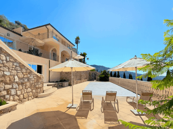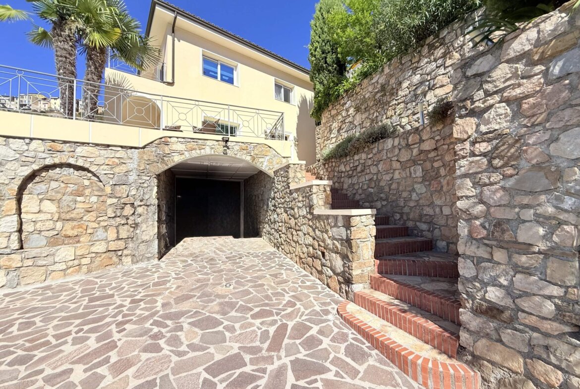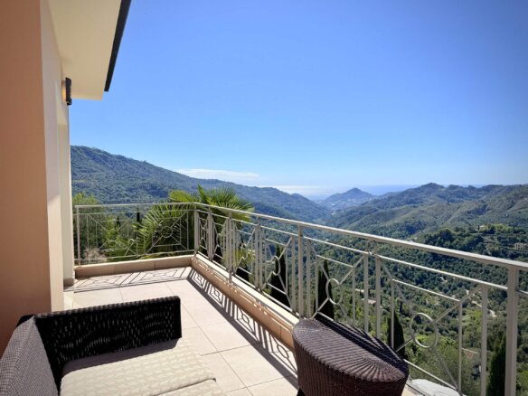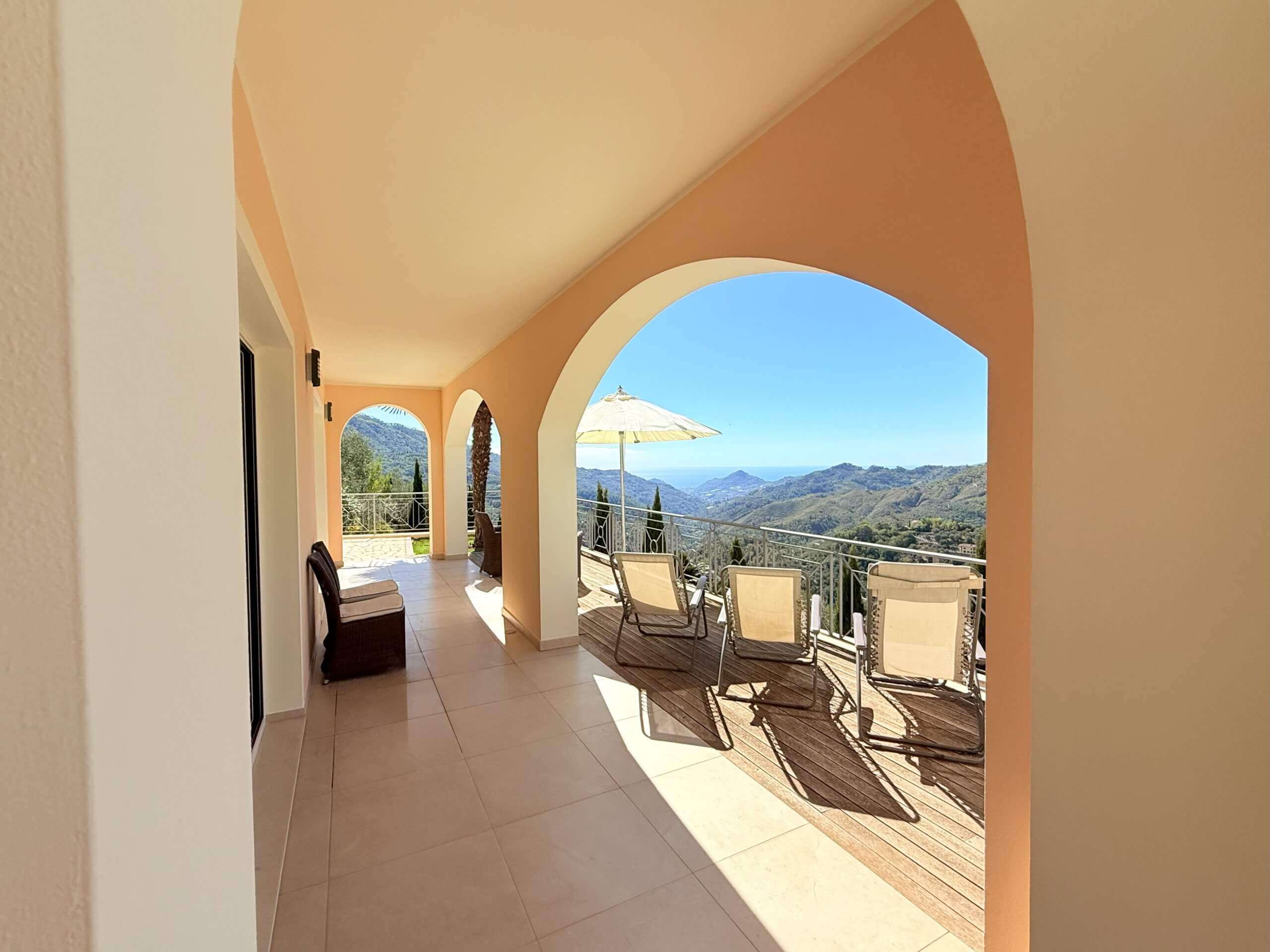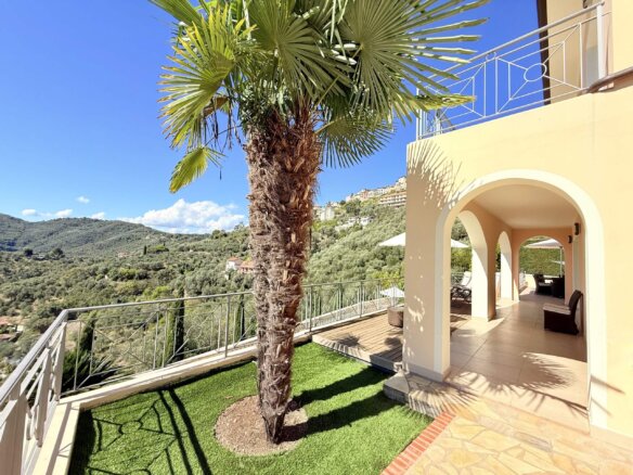 Diese moderne Villa mit spektakulärem Meerblick vereint mediterranen Charme, klare Architektur und höchsten Wohnkomfort. Sie wurde im Jahr 2006 neu errichtet und befindet sich am Rand des malerischen Ortes Perinaldo, nur wenige Gehminuten vom historischen Zentrum entfernt. Auf rund 240 m² Wohn- und Nutzfläche über drei Etagen bietet sie helle, großzügige Räume, hochwertige Ausstattung und ein stilvolles Ambiente in ruhiger Panoramalage.