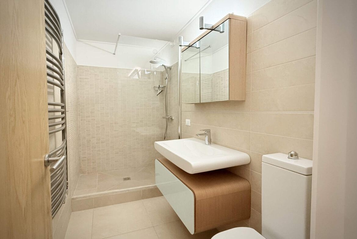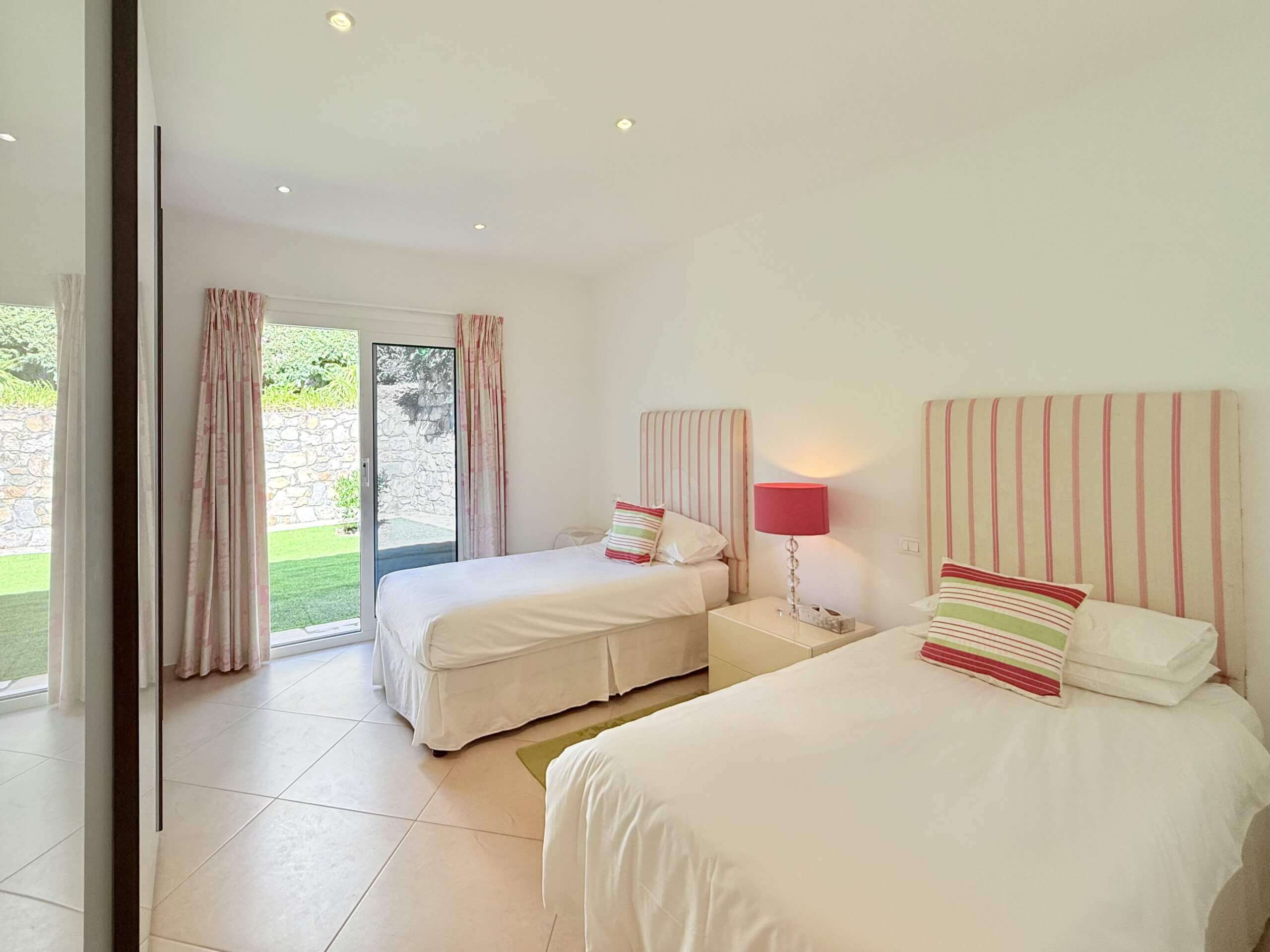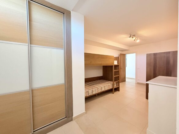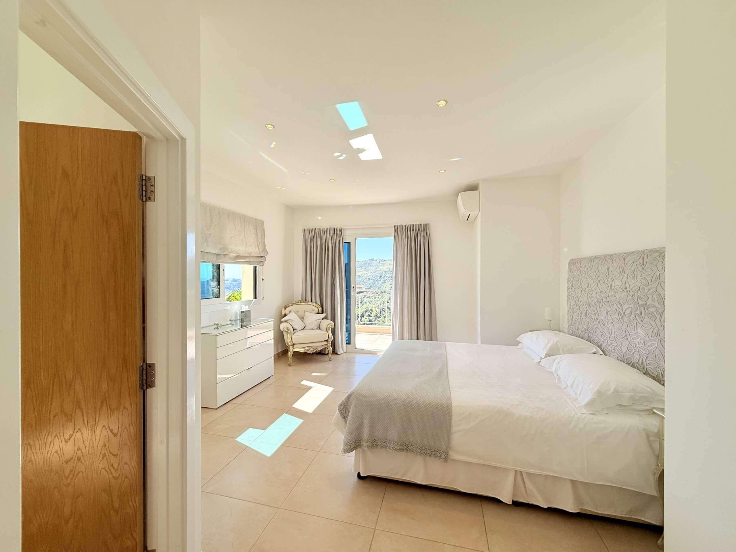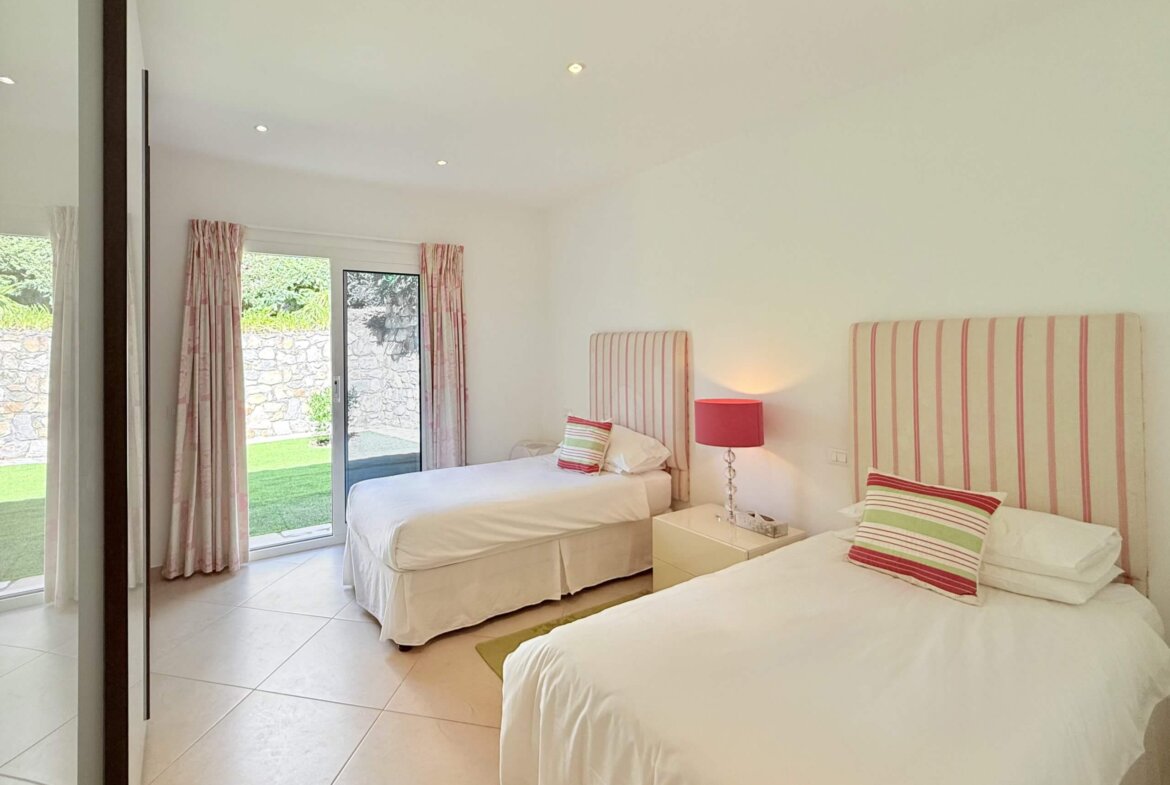 Die erste Etage beherbergt zwei helle, großzügige Schlafzimmer, jeweils mit eigenem Bad und Zugang zu einer privaten Terrasse oder Außenfläche. Das Hauptschlafzimmer mit begehbarem Kleiderschrank schafft einen privaten Rückzugsort mit besonderem Komfort.