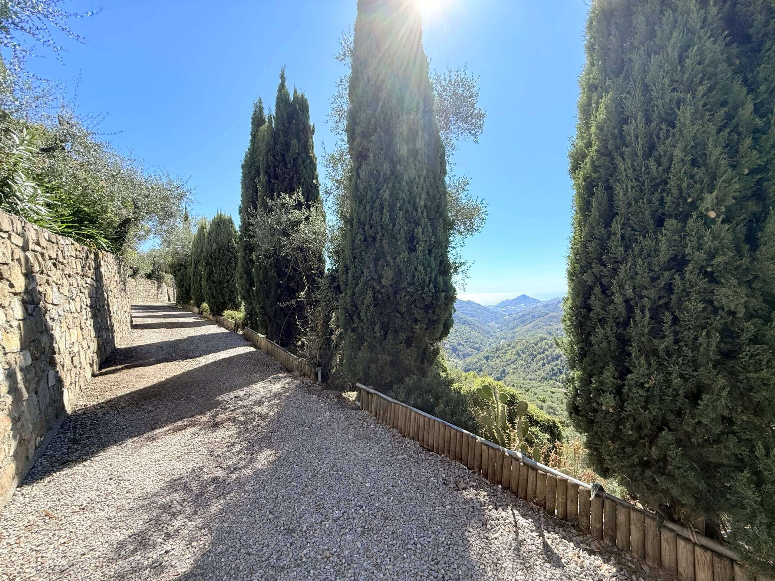 Das rund 2.800 m² große Grundstück beeindruckt bereits bei der Anfahrt: Eine von Zypressen gesäumte Privatstraße führt zur eleganten Zufahrt und zum elektrisch gesteuerten Einfahrtstor – der Auftakt zu absoluter Privatsphäre und mediterranem Lebensgefühl. Das schön angelegte Gelände mit Terrassenflächen lädt zum Entspannen und Verweilen ein und ist teils mit Olivenbäumen bepflanzt. Der bereits vorgesehene Poolbereich kann nach entsprechender Anpassung der örtlichen Bauvorschriften perspektivisch realisiert und individuell gestaltet werden.