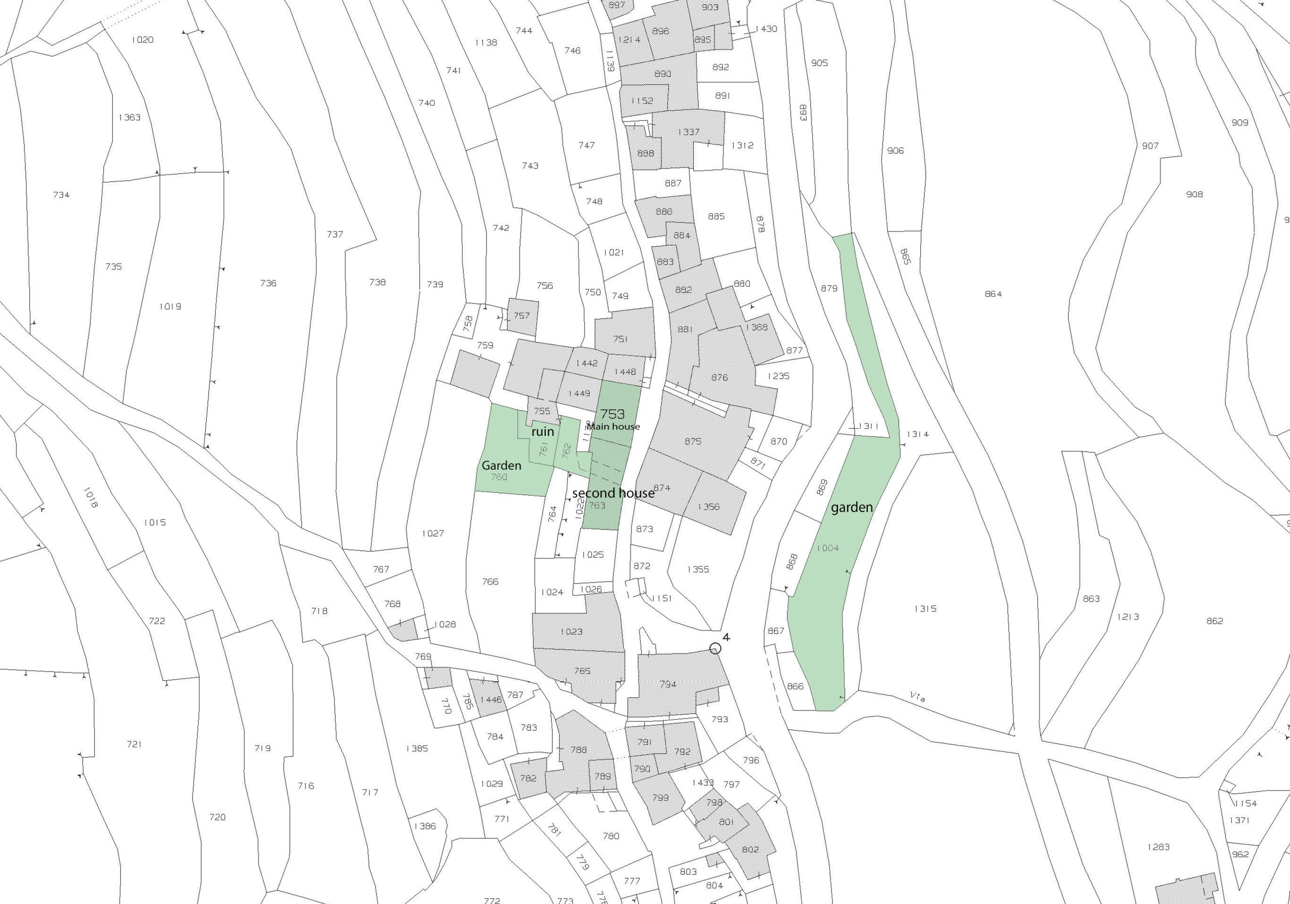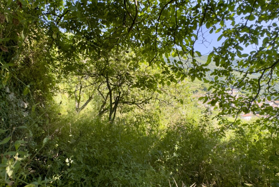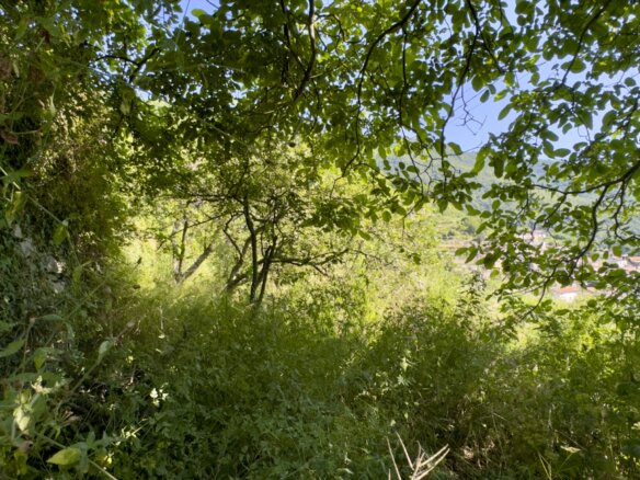 Abgerundet wird das außergewöhnliche Anwesen durch ein weiteres, etwa 547 m² großes Grundstück etwas unterhalb der Häuser. Die breite Gartenterrasse eignet sich ideal für den Anbau von Wein oder Gemüse und wartet nur darauf, wieder zum Leben erweckt zu werden.