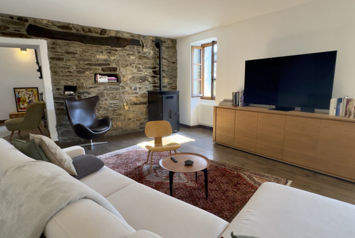 Das Haus wurde 2010 umfassend und hochwertig saniert. Die Böden sind durchgehend mit edlem Walnussparkett ausgestattet, Fenster, Türen und Fensterläden sind aus maßgefertigtem Holz. Für wohlige Wärme sorgt eine Zentralheizung, die wahlweise über den Pelletofen im Wohnzimmer oder die moderne Gastherme (Stadtgasanschluss, erneuert 2024) betrieben wird. Auch die Terrasse wurde 2022 neu abgedichtet.