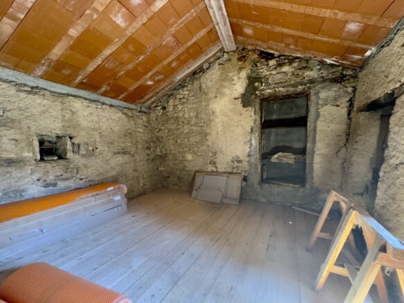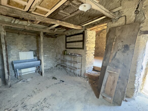 Neben dem Haupthaus gehört ein weiteres, ausbaufähiges Natursteingebäude zum Angebot. Die rund 70 m² Wohnfläche verteilt sich auf zwei Etagen mit jeweils zwei Räumen – im Erdgeschoss sowie im Obergeschoss, das über einen separaten Zugang verfügt. Das Dach wurde bereits erneuert, und die solide Bausubstanz eröffnet vielfältige Nutzungsmöglichkeiten, etwa als Gästehaus, Werkstatt oder Atelier.