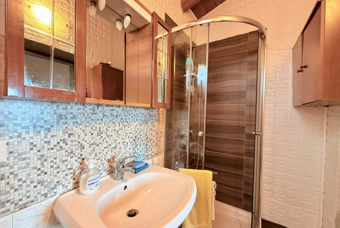 Das Haus bietet rund 40 m² Wohn- und Nutzfläche auf zwei Ebenen. Im Obergeschoss stehen ca. 22 m² mit gemütlicher Wohnküche, Schlafzimmer und modernem Duschbad zur Verfügung. Im Untergeschoss befinden sich zwei separate, ausbaufähige Räume mit zusammen etwa 18 m² – ideal als Hobbyraum oder Atelier. Zusätzlich besteht die Möglichkeit, das Gebäude um weitere ca. 46 m² zu erweitern.