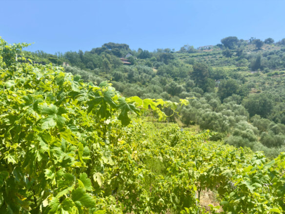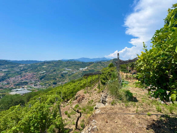Das großzügige, terrassierte Grundstück umfasst etwa 8.400 m² und vereint mediterranes Lebensgefühl mit landwirtschaftlichem Charme. Auf rund 6.000 m² gedeihen Rossese DOC Weinreben, hinzu kommen 29 jahrhundertealte Olivenbäume, Obstbäume, Mimosen und ein kleiner Gemüsegarten. Ideale Voraussetzungen für Selbstversorger oder Liebhaber mediterraner Landschaften. Die Zufahrt erfolgt überwiegend über eine kleine, befestigte Bergstraße; lediglich die letzten rund 600 Meter führen über einen Feldweg.