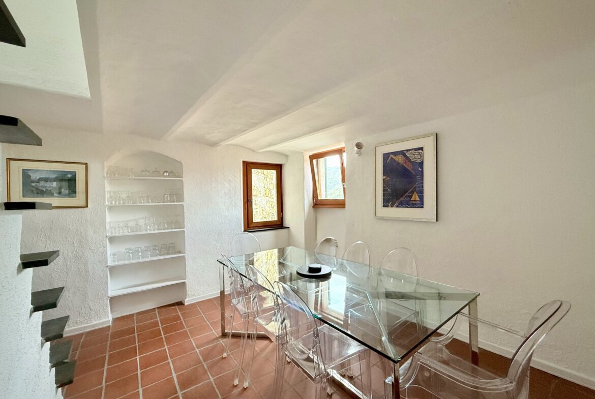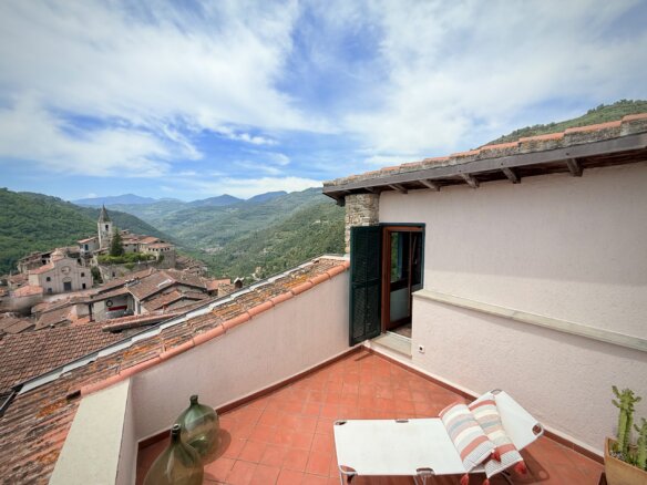 Right in the heart of the medieval artist’s village Apricale lies this charming and spacious old town apartment offering approx. 154 m2 split over 4 floor levels. Three fantastic panoramic terraces, one of which is a stunning roof terrace with views over Apricale’s roof tops all the way to the Castello della Lucertola offer stunning views and the joys of Mediterranean lifestyle.