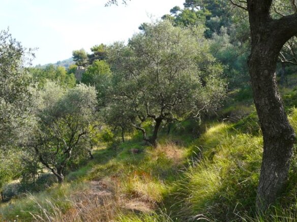 Charming terraced olive grove with natural stone house in quiet panoramic setting