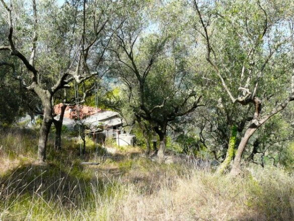 This property is embedded in a 3,768 qm olive grove and surrounded by the rolling hills of Dolceacqua. The charming medieval town is only 5 km away and the beaches of the Ligurian Riviera are 10 km down the road. Thanks to the westerly orientation, this property enjoys plenty of sunshine until late into the evening and stunning views over the Maritime Alps. The house is semi detached with a private access road and further privacy provided by a visual cover. The Italian neighbours use their half of the house rather infrequently as a second home. The house offered for sale is a well-preserved rustico with adjacent shed-like construction. Both buildings are registered in the land registry and can therefore be renovated and extended. It would be possible to create 50 qm living space on one floor level with a 10 qm cellar room with a vaulted ceiling. The existing planning extension has unfortunately run out and new plans would have to be handed in to the authorities. Water and electricity supplies are close to the fenced in grounds and a communal road with only the final 1.8 km being dirt track, connect with the property.