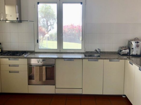 - very well equipped kitchen with 4 flame gas hob, oven, large fridge, freezer department, espresso maker, filter coffee machine, dishwasher, microwave