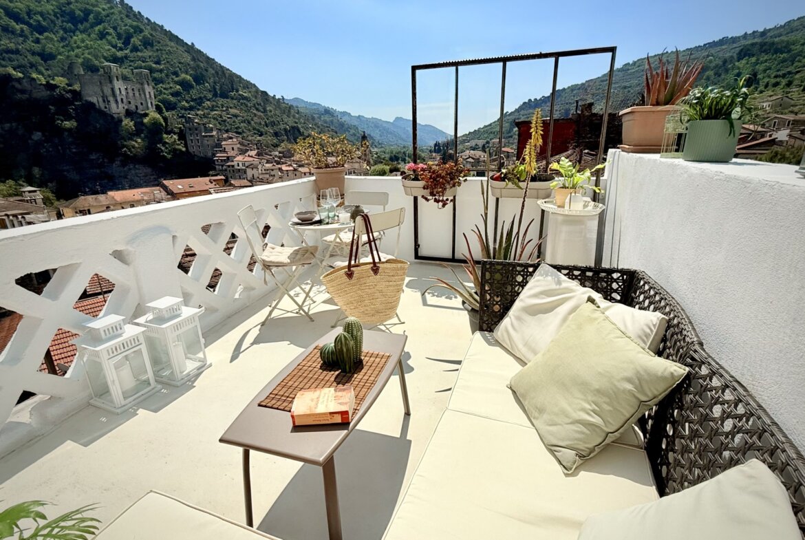 Situated in a quiet mews above the old town of Dolceacqua, this substantially renovated house enjoys stunning views over the historically symbolic Castello Doria. The attractive Piazza Garibaldi with its selection of shops, Cafés and restaurants is in walking distance. Off-street parking is available close to the house; alternatively, there is free parking available on a public car park nearby.