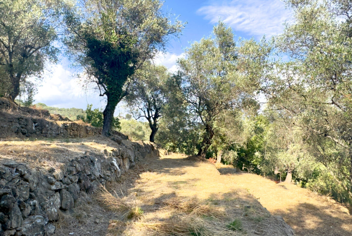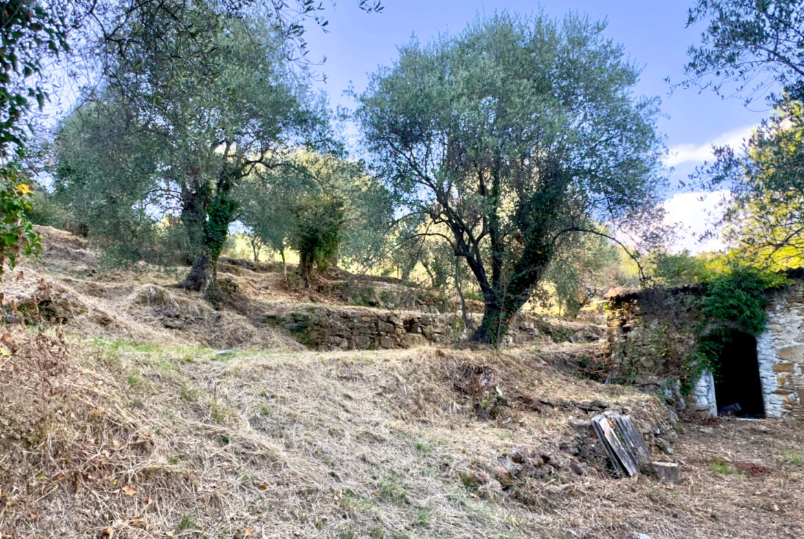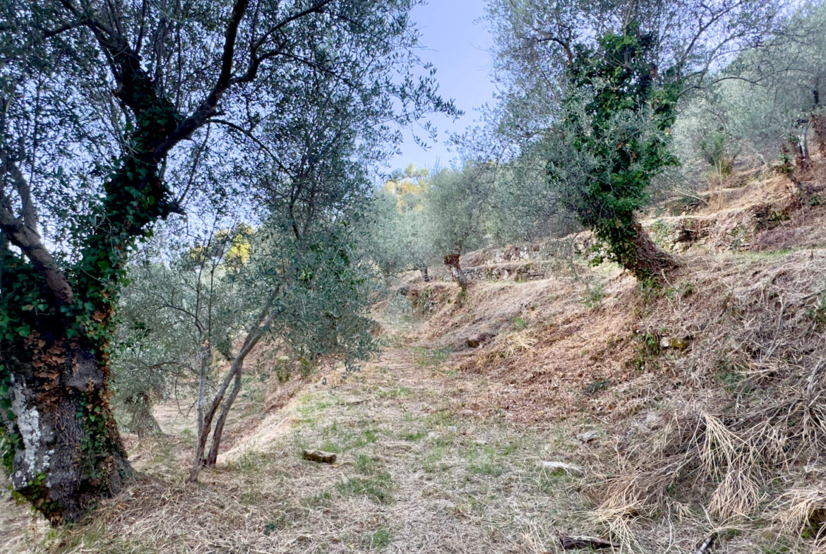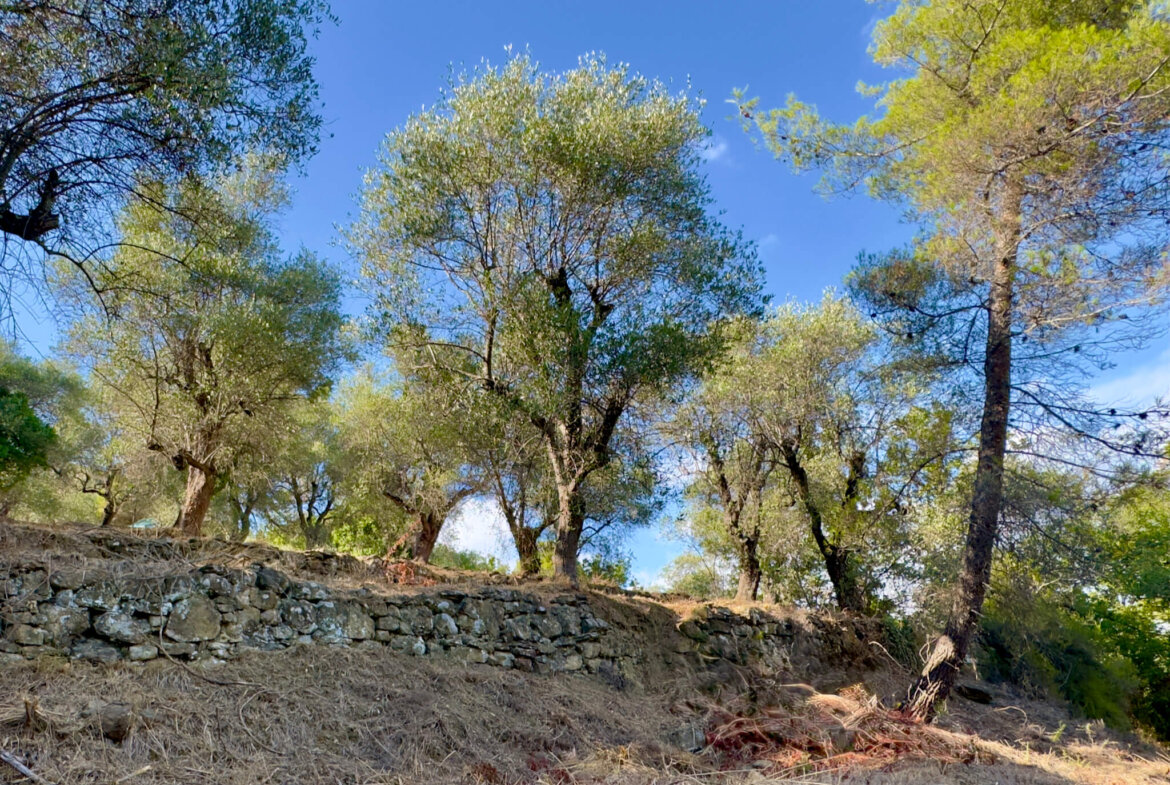 Charming terraced olive grove with natural stone house in quiet panoramic setting