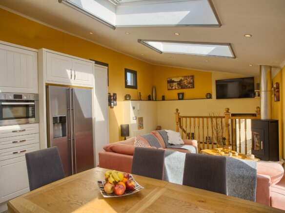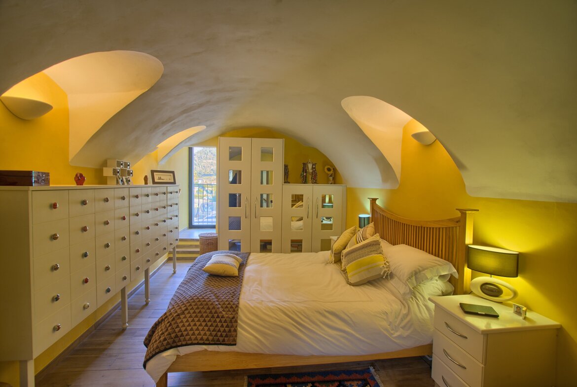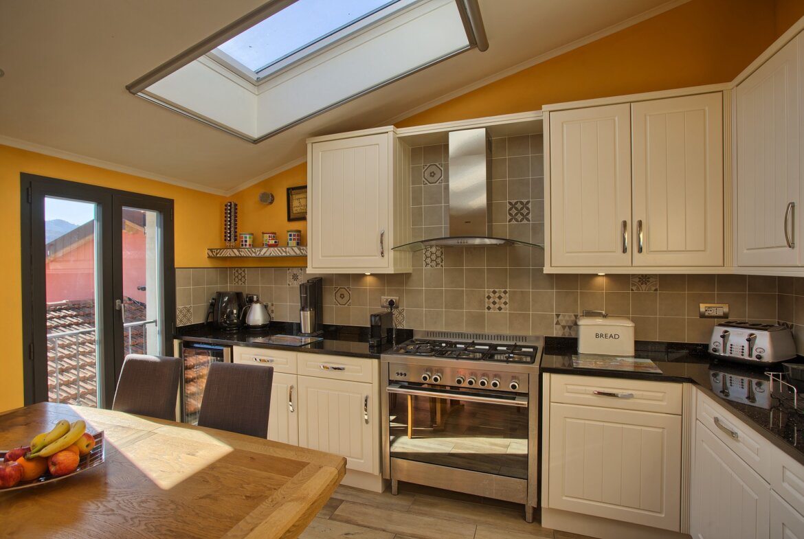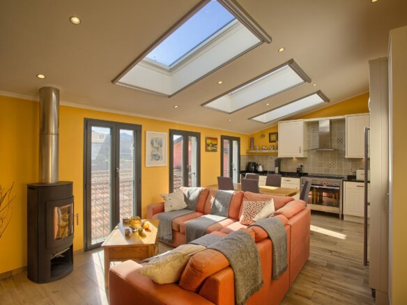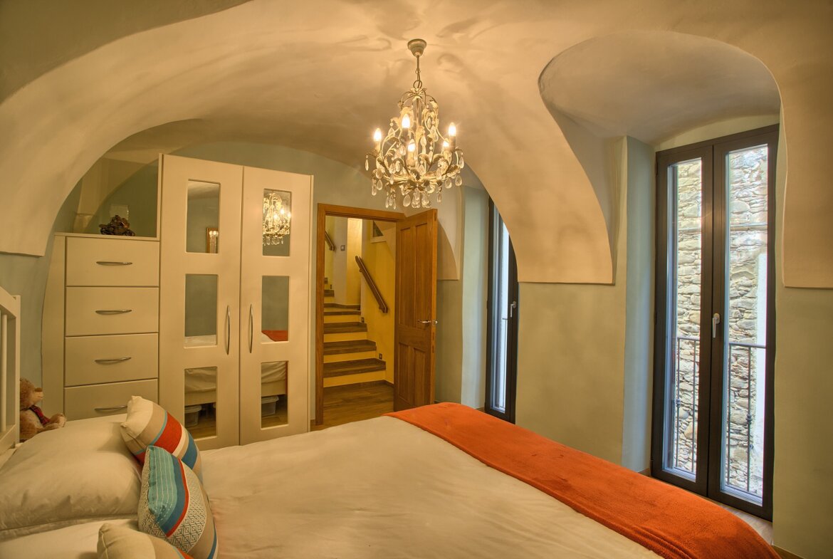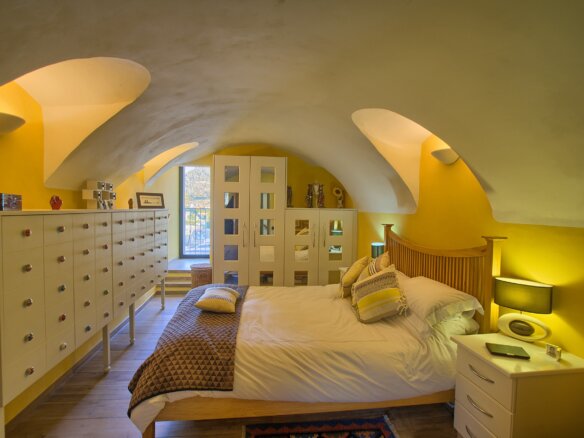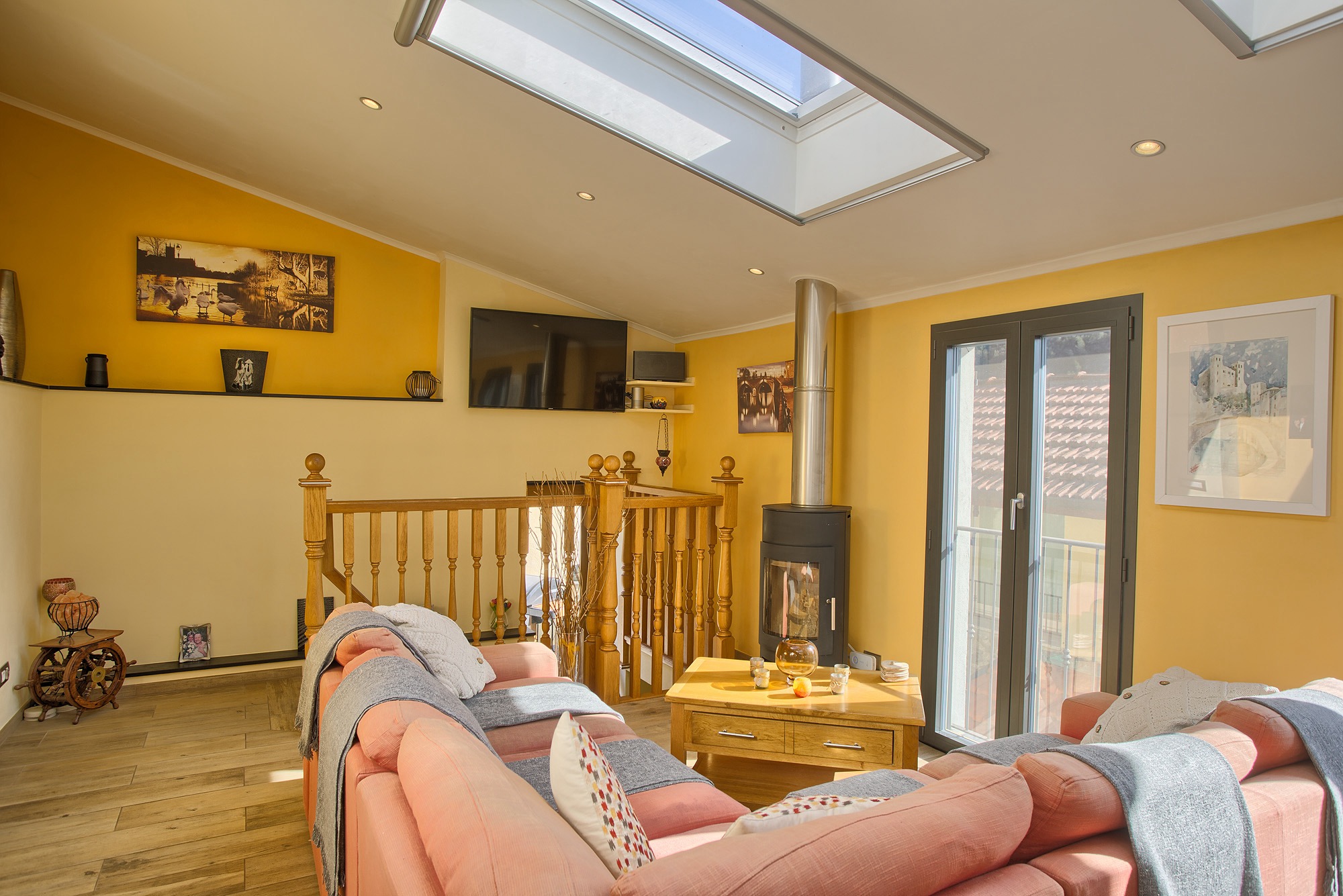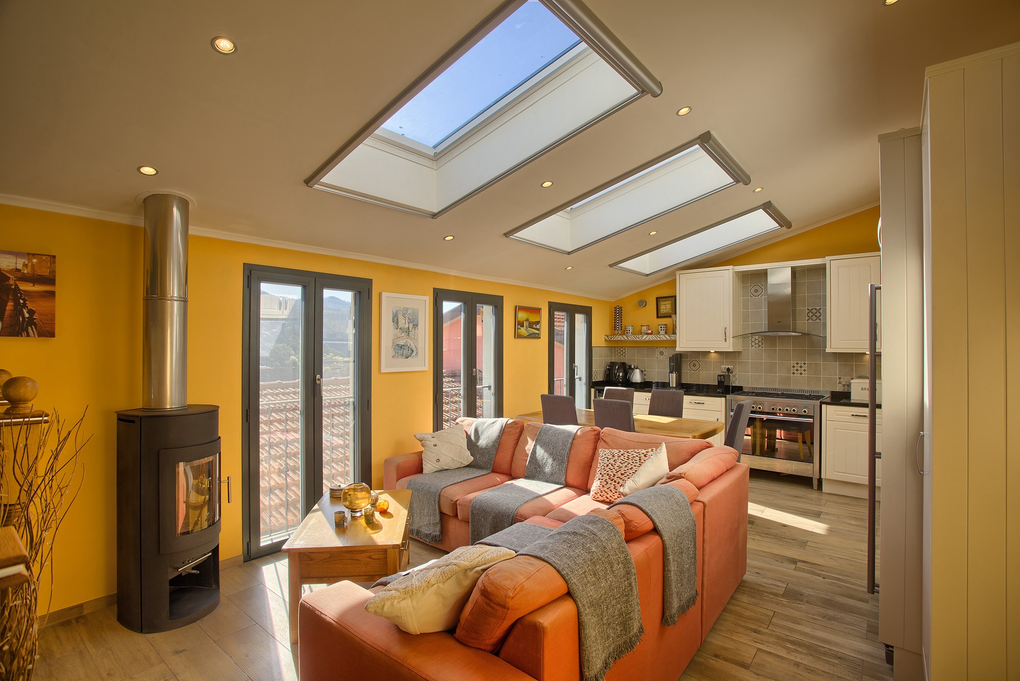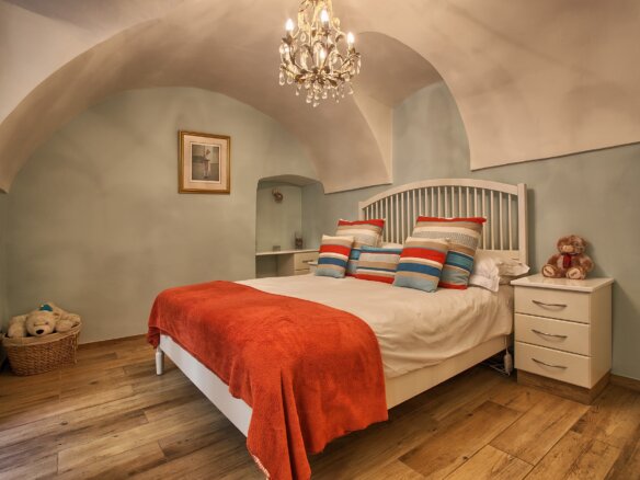 This historic building underwent meticulous renovations from 2013 to 2015, combining modern comforts with traditional elements such as vaulted ceilings, natural stone brickwork, and charming alcoves. Throughout the home, bespoke built-in furniture showcases the maximum use of storage space, with handcrafted cabinets adding a touch of character to every room. As you ascend through the levels, you’ll appreciate the intelligent use of space that ensures both functionality and style. Hot water powered by solar panels, combined with gas fired underfloor heating in every room, aluminium double-glazed windows and shutters guarantees winter warmth with an eco-friendly touch.
