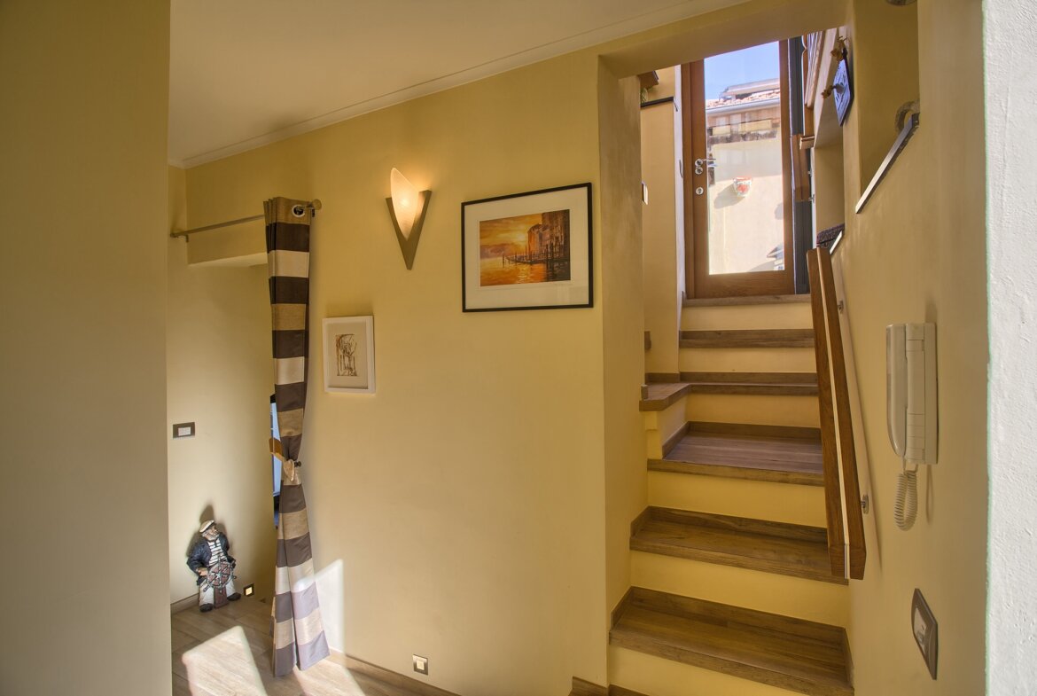 The highlight of this townhouse awaits on the fourth floor. A living/dining room with an abundance of natural light and a custom designed contemporary kitchen. French windows provide stunning views of the old town and Castello Doria. During colder months, a wood-fired stove adds a touch of coziness to your relaxation. Additionally, a 15 m² roof terrace between the third and fourth floors offers a perfect spot for al fresco dining or simply unwinding while enjoying the scenic surroundings.