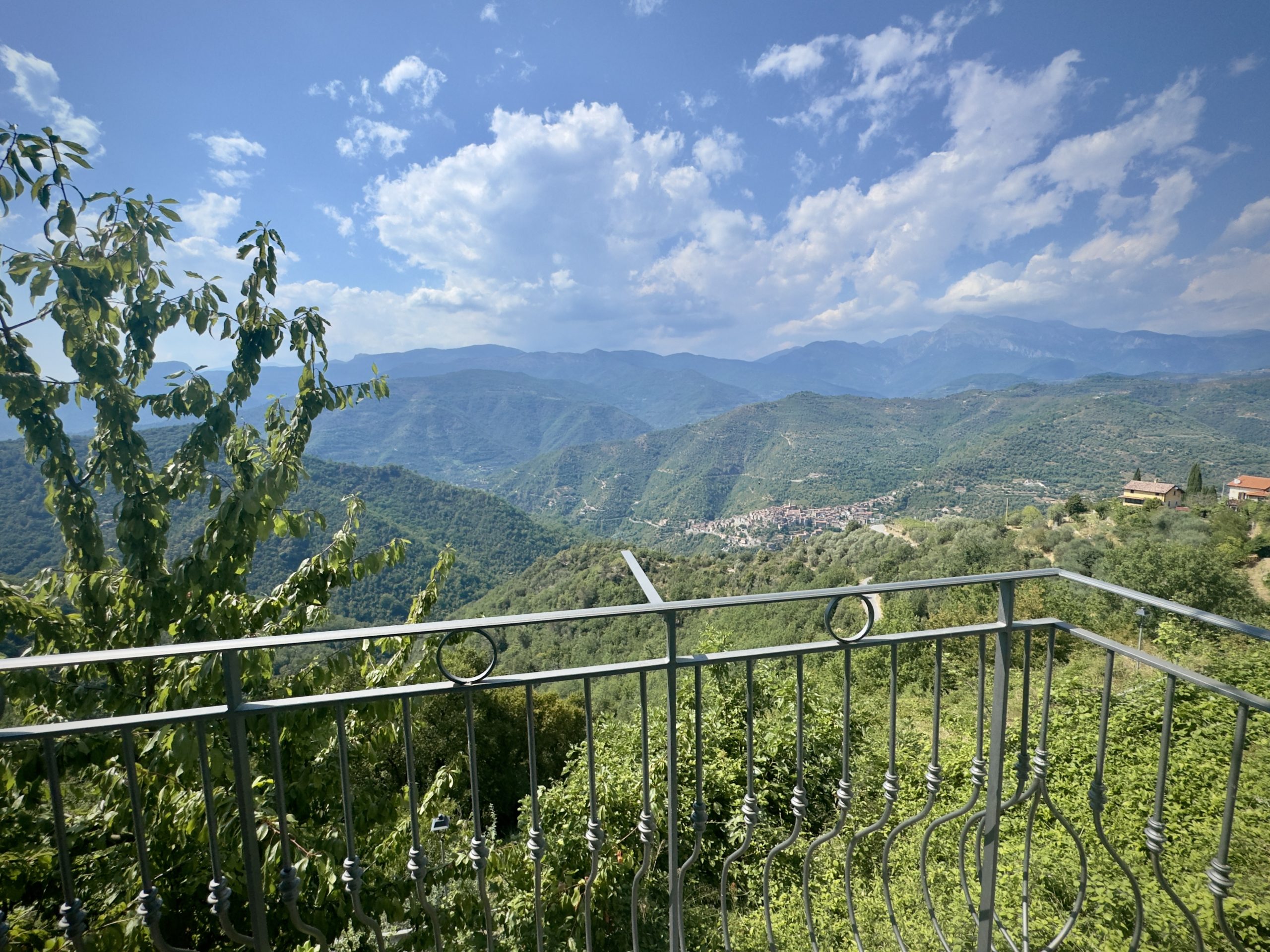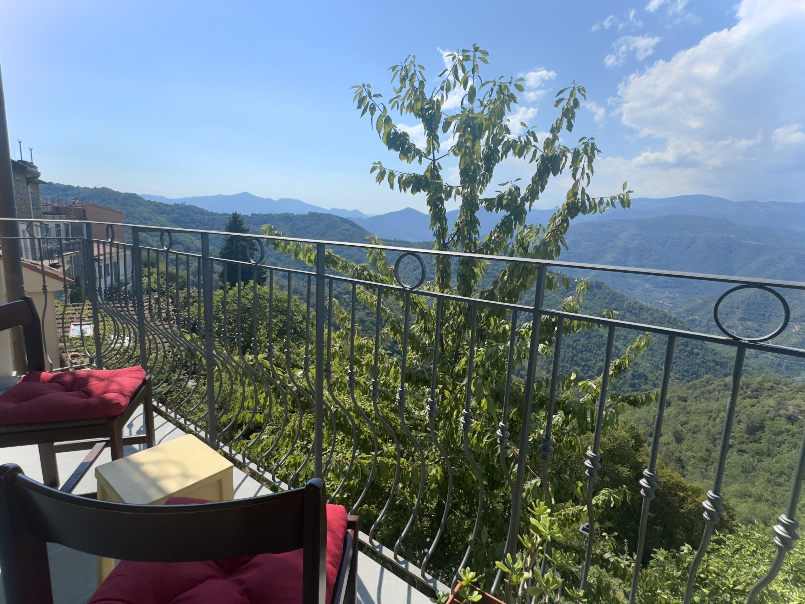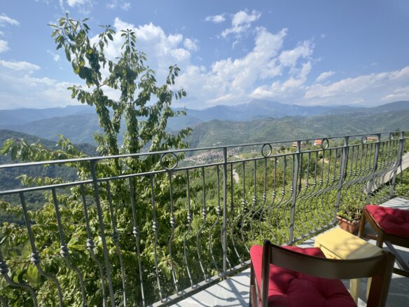 The mountain village Perinaldo is situated on a hilltop some 572 m above sea level. The surroundings are known for their olive groves, vineyards and woodland. A network of hiking routes and mountain roads invites to explore the Ligurian hinterland. The beaches of Bordighera are less than a 20 minutes drive away and Sanremo, Menton and Monte Carlo are a 50 minute drive down the road. The international airport Nice and be reached along the motorway within the hour. Perinaldo has an intact infra structure and the local shops, the bar, restaurants and pharmacy are in comfortable walking distance.