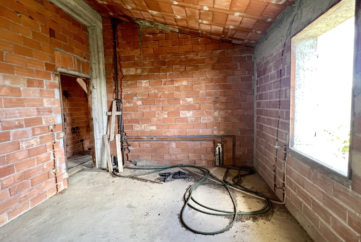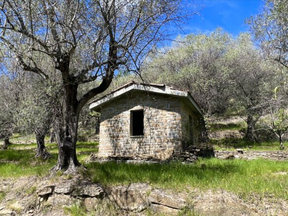 Olive grove with shell of building, potential for development and sea view