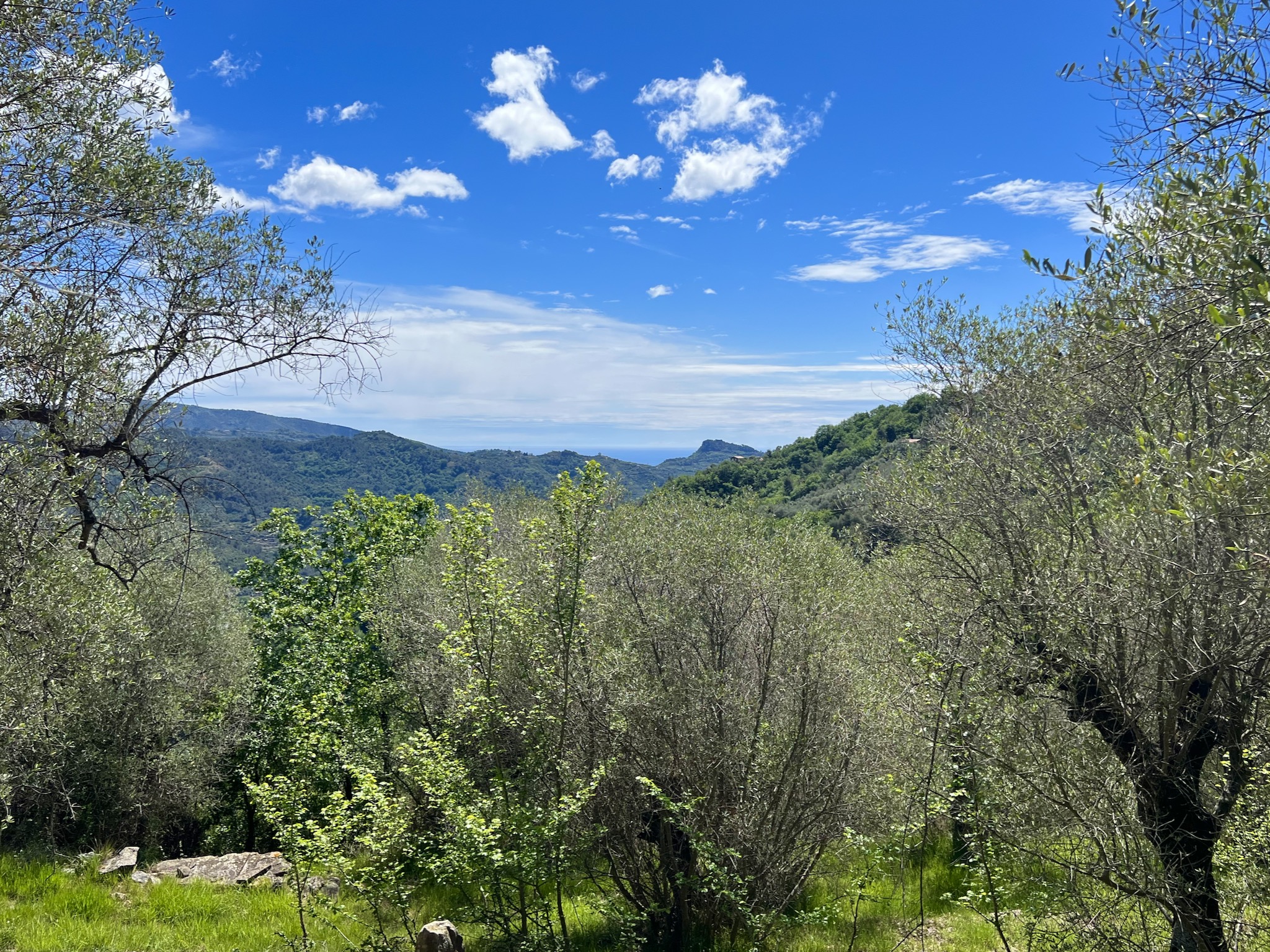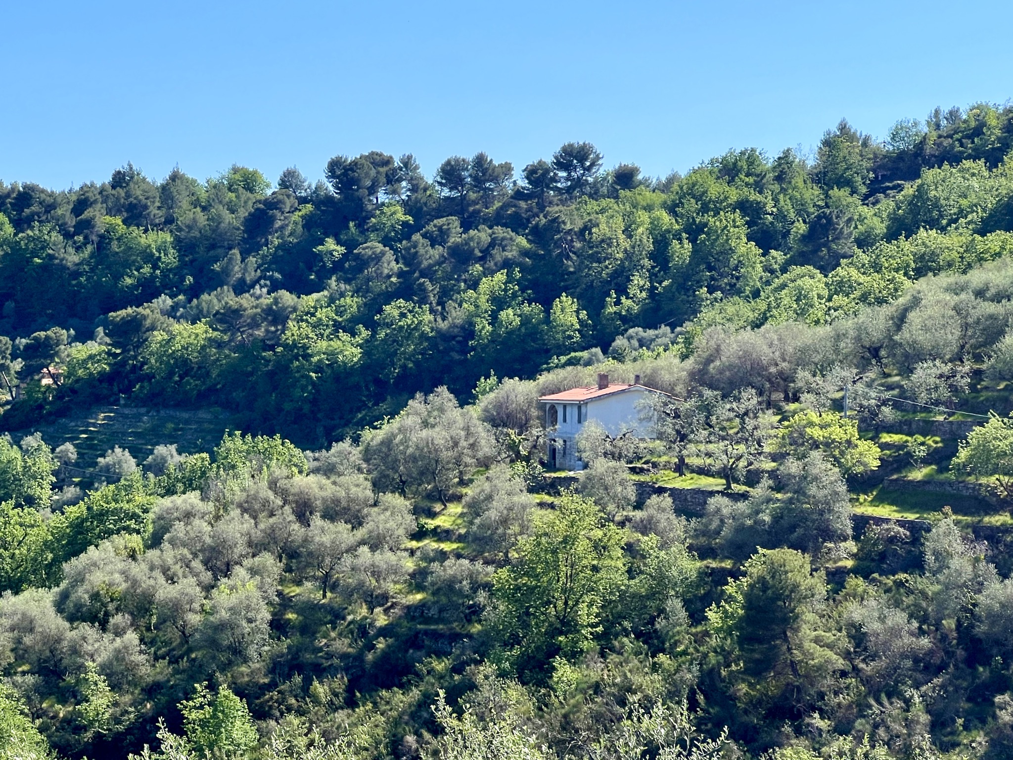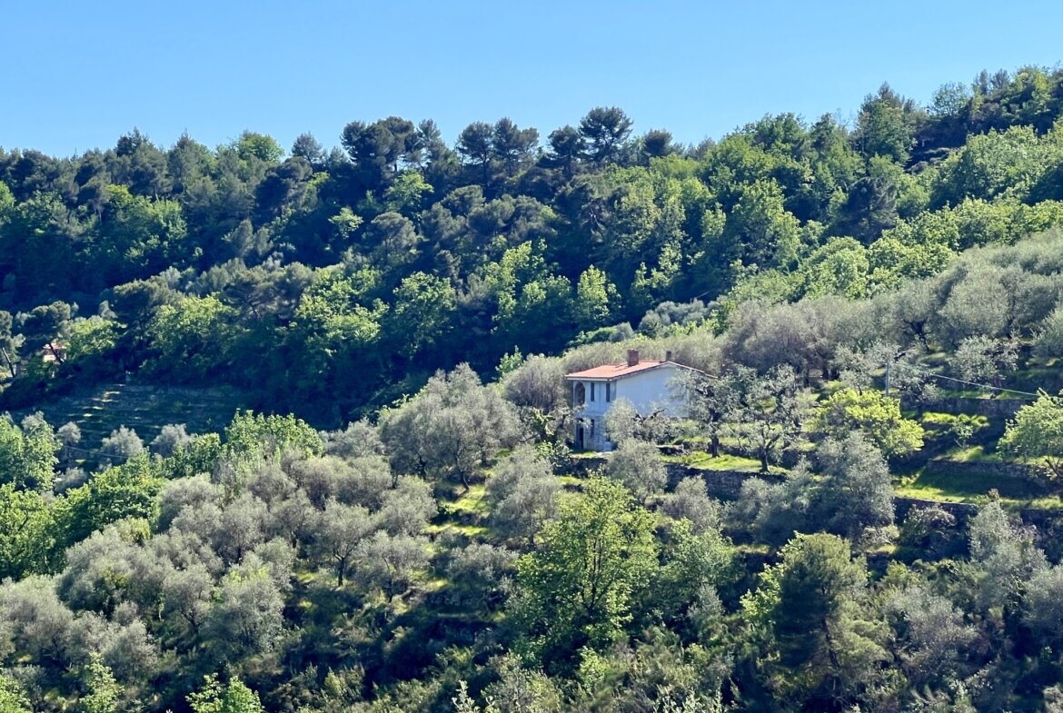 A few well looked after country houses are dotted around the neighbourhood and the nearest infra structure with shops and restaurants is conveniently close. Dolceacqua is a 15 minute drive away and Ventimiglia is 20 minutes down the road. The international airport Nice can be reached via the motorway in approx. 50 minutes. A well-constructed road connects with the grounds, the final 300 m leading to the grounds is a private road (concrete and forest track).