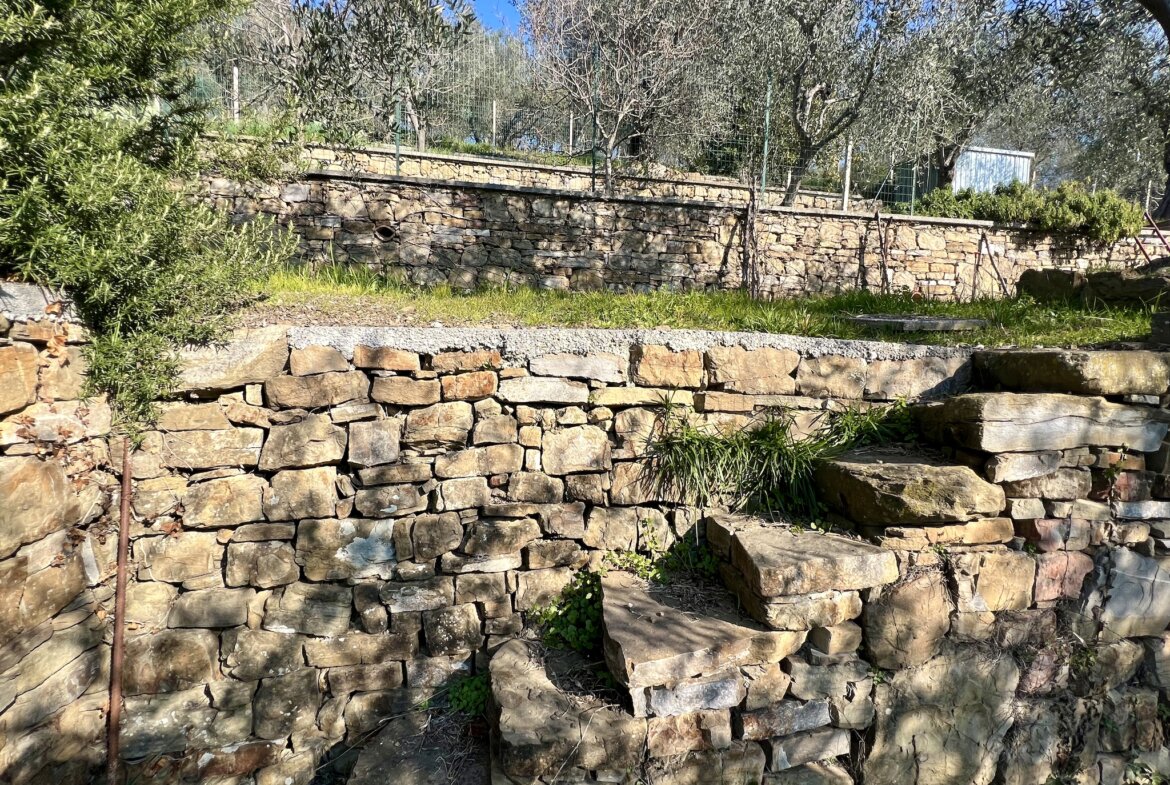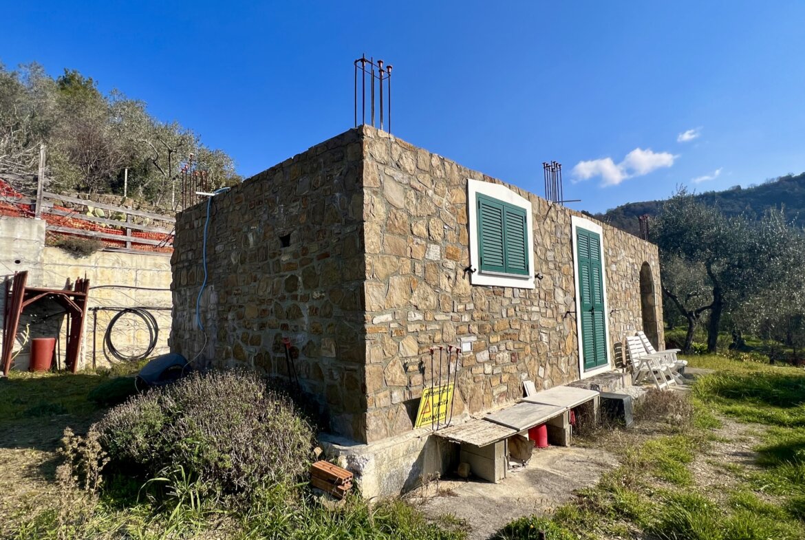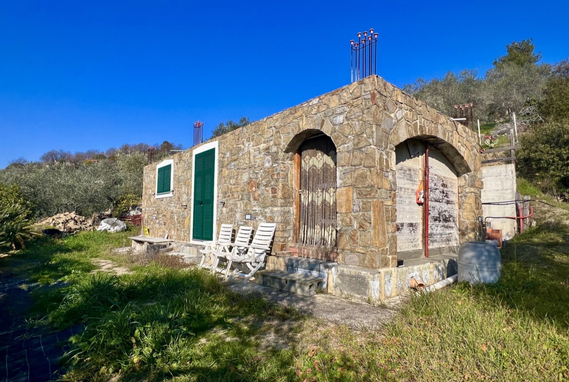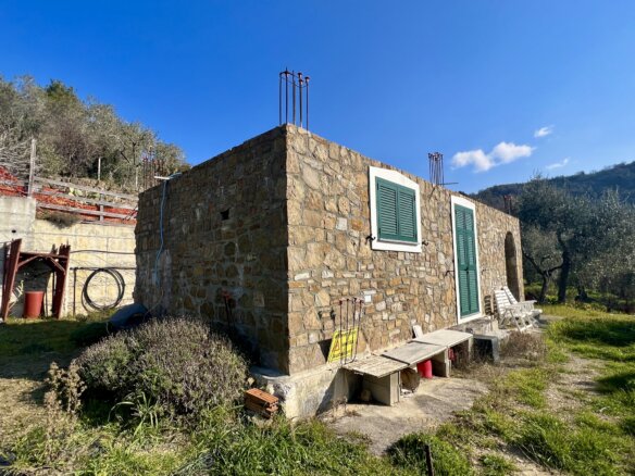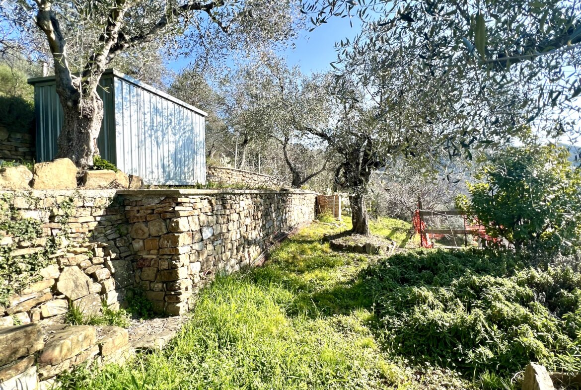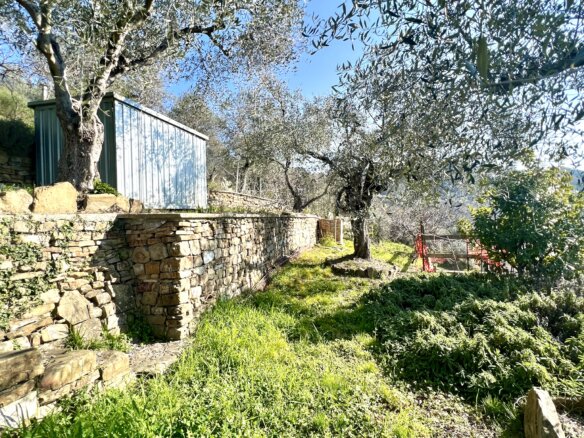 The building measuring 40 m2 on the property for sale above Dolceacqua is registered for use as an agricultural “magazine” (storage/work shop). It is of solid quality and was built in 2012. The room is available for immediate use; water and electricity mains are in place.