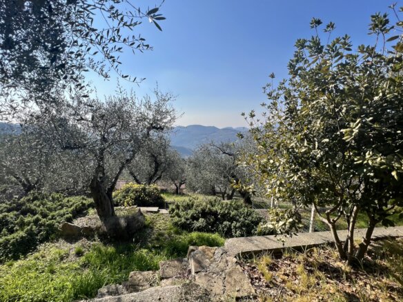 The property for sale with potential for development is situated in the beautiful surroundings above the medieval village Dolceacqua. It is south facing and enjoys sea view. The village part “Morghe” situated some 400 m above sea level is one of the most sought after areas in the region. The charming medieval village center of Dolceacqua can be reached within 15 minutes along a well-constructed mountain road and Perinaldo lies some 3 km away in the opposite direction. Both villages have good infra structures with shopping facilities and restaurants. Surrounded by olive groves and vineyards, there are a few well looked after villages dotted around the neighbourhood and a country inn serving good local cuisine is in walking distance. The nearest coastal resorts Bordighera and Ventimiglia are just a 25 minute drive away and the Côte d’Azur with Nice and Monte Carlo can be reached along the motorway in one hour.