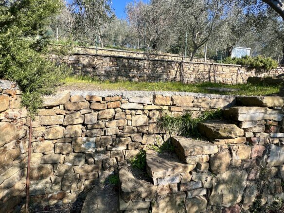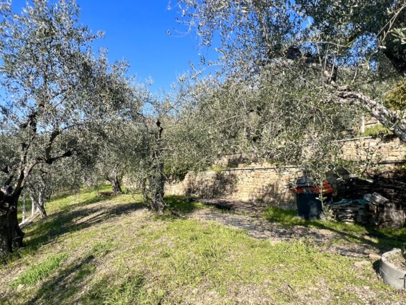 The building is surrounded by olive trees, mature rosemary and sage bushes as well as fig trees and other fruit trees. The terraces grounds are fully fenced in and the stone walls have been renewed.
