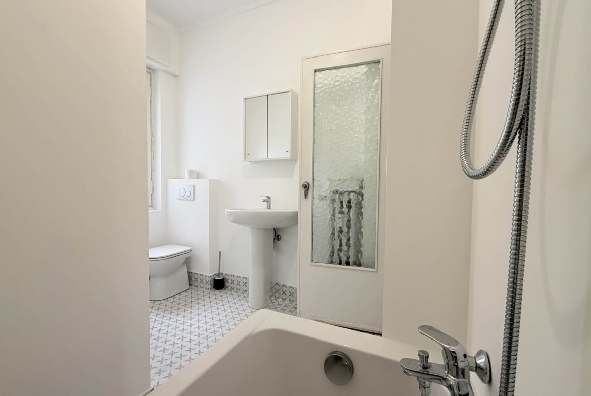 The apartment also includes a practical cellar of approximately 8 m². The technical installations have been modernized in recent years: the electrical and water systems were renewed in 2024, and a new secure entrance door was installed. The apartment is heated via central heating, while hot water is supplied by an electric boiler.
