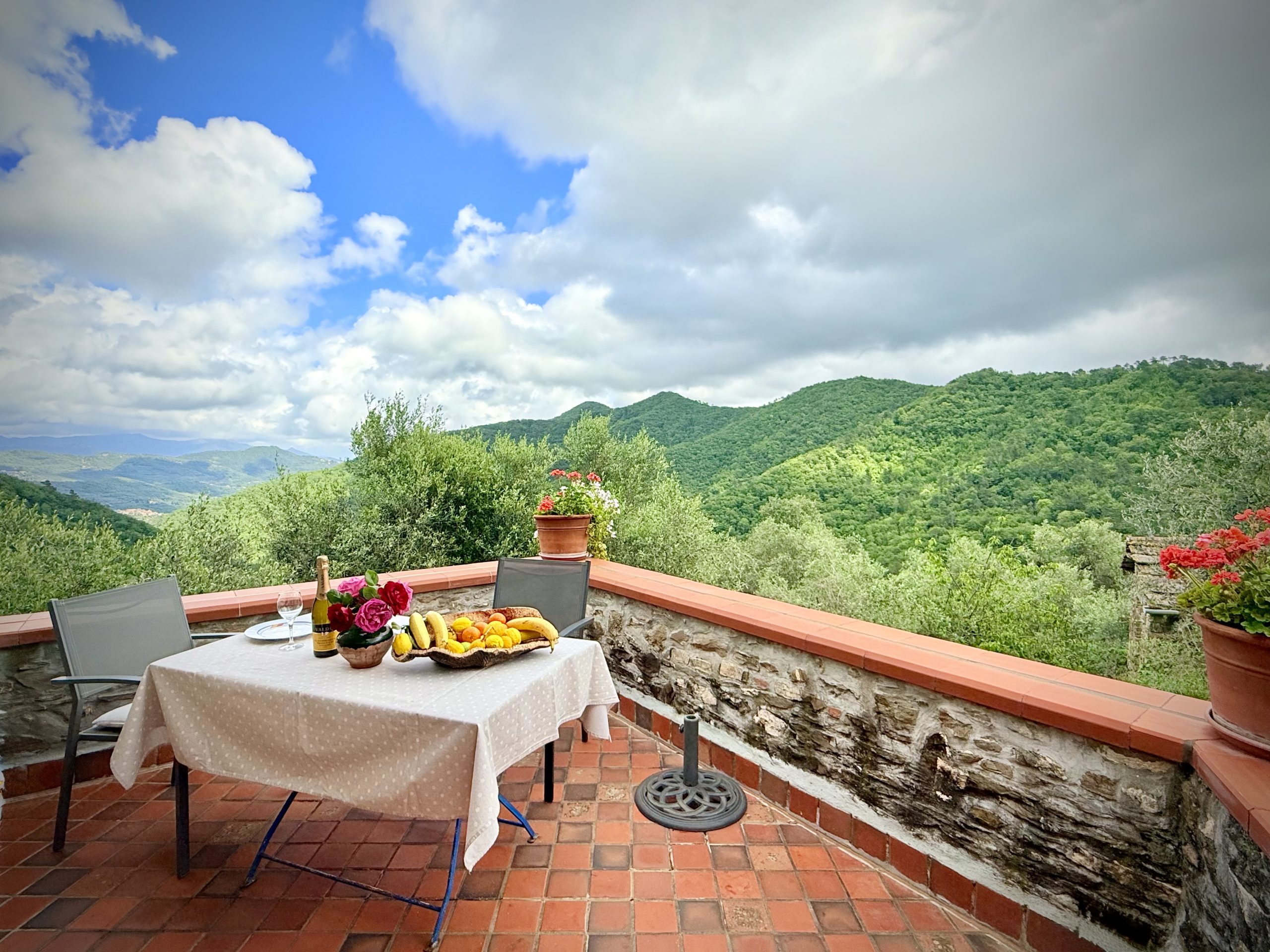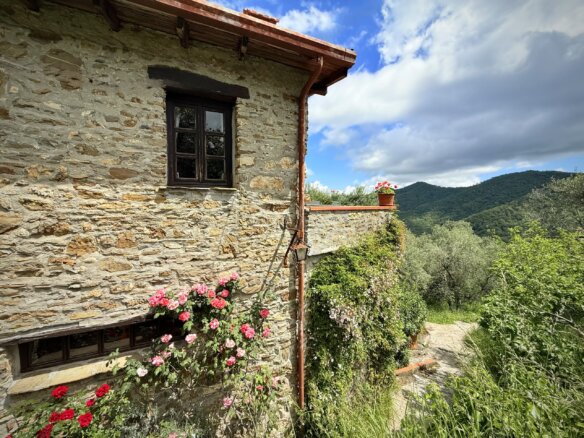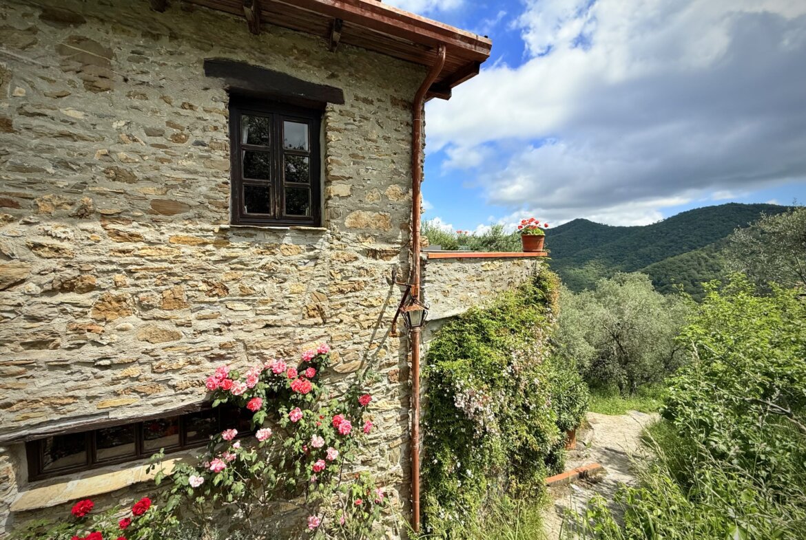 This 300 year old farmhouse with solid stone walls occupies a quiet spot on the outskirts of the hamlet Poggio Bottaro, some 19 km away from the sea. It enjoys a mild climate, making it a pleasant place to live all year round. Attractive leisure activities are available literally on the doorstep with excursions into the beautiful hinterland between Ventimiglia and Genova and the sandy beaches of Alassio and Laigueglia 40 minutes down the road being just some of the options. The well-known golf course Garlenda is 14 km away and the neighbouring village Testico with its small supermarket, bar and Trattoria is only 1.2 km down the road. The nearest international airports are Nice (approx. 124 km ) and Genova (approx. 104 km).