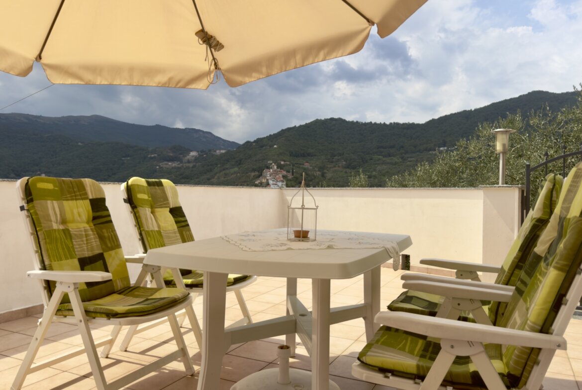 Charming south-facing village apartment with panoramic views in the heart of Apricale.