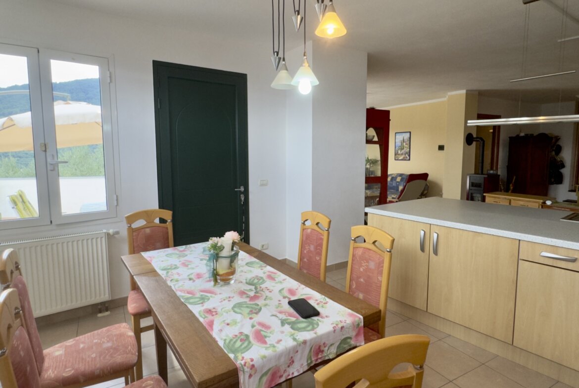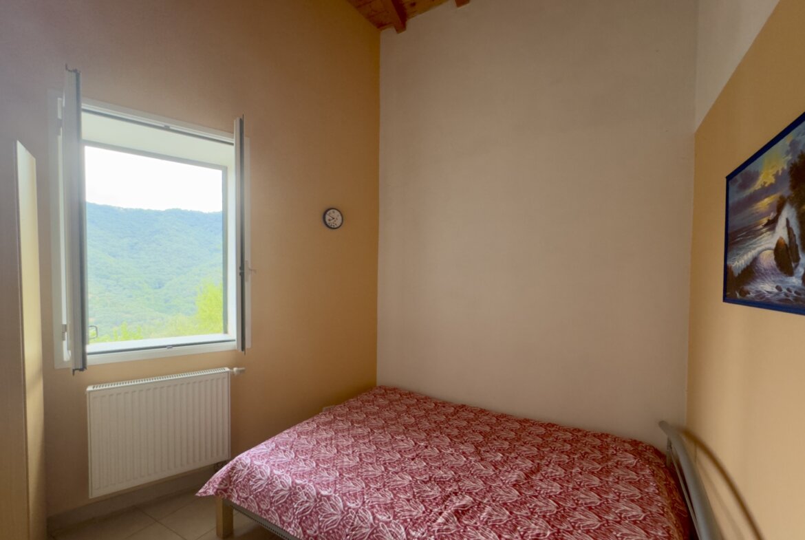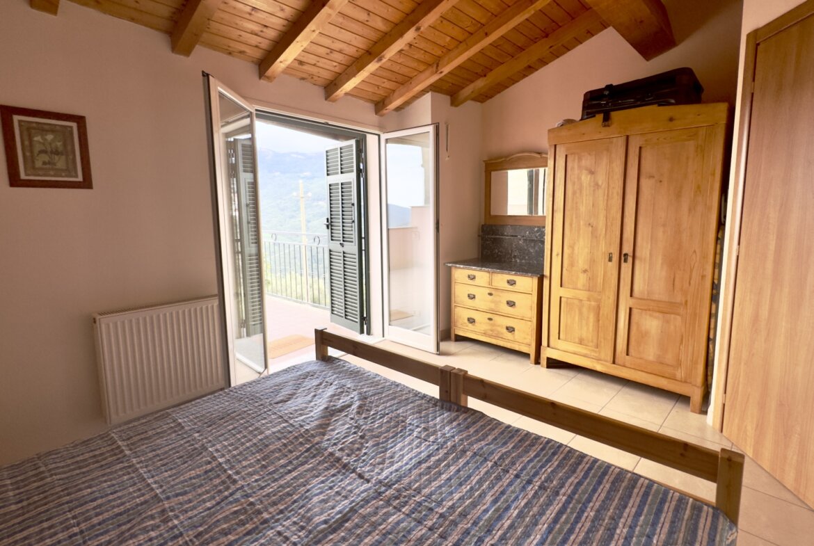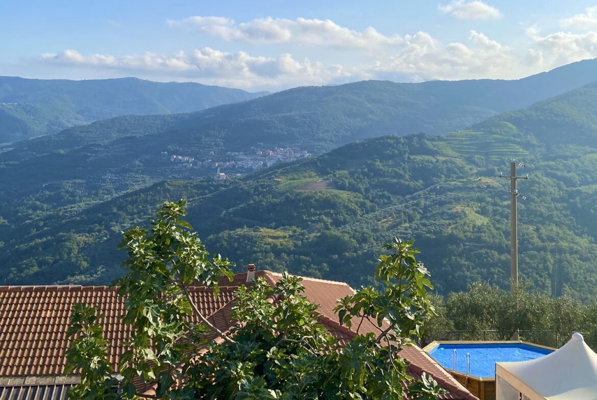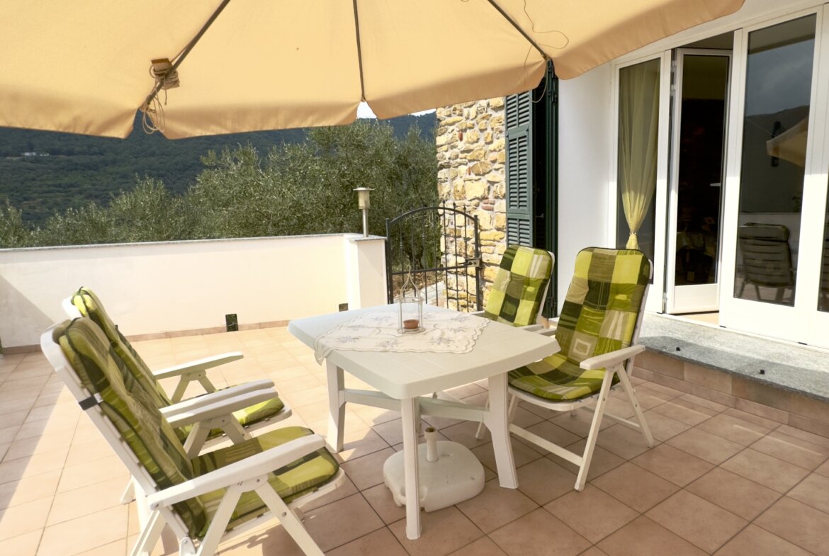 This semi-detached town house for sale situated on the outskirts of Cesio successfully combines the traditional charm of a village house with contemporary comfort. Enjoy panoramic views of the Ligurian landscape, featuring olive groves, vineyards, and chestnut trees, from this property.