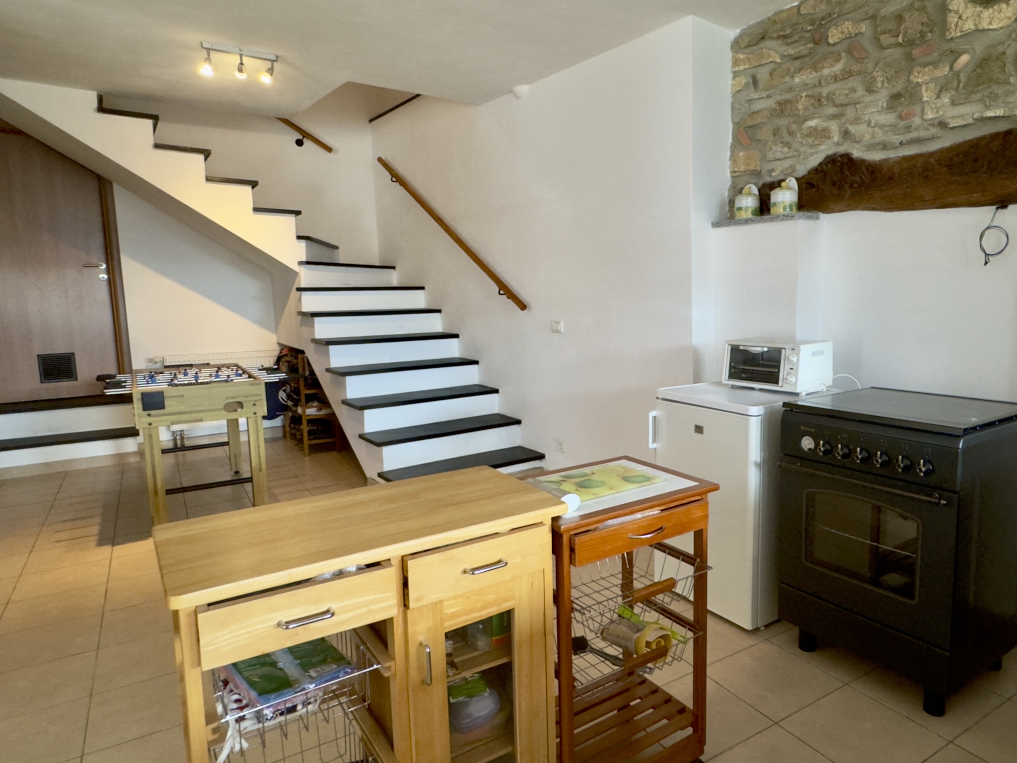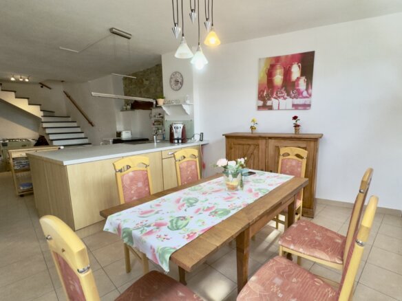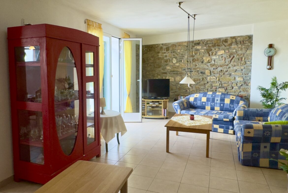 From 2004 to 2007 the town house for sale was completely renovated and offers 143m2 light flooded living space (191 m2 commercial space) split over two floor levels. Natural stone, wood and slate reflect the rural traditions and from both terraces (12m2 and 35 m2 approx.) stunning panoramic mountain views can be enjoyed.